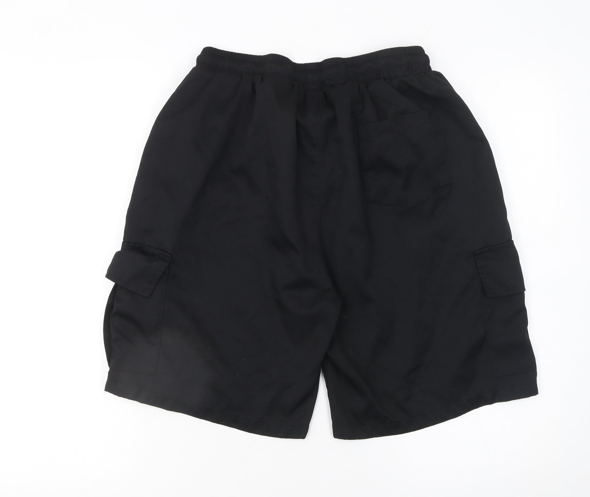 Step into relaxed style and everyday practicality with these Manfinity Men’s Black Cargo Shorts in size L. Designed for comfort, these shorts feature a mid-rise fit with a secure elasticated waistband and drawstring closure, providing easy adjustability and a stay-put fit. Crafted from lightweight 100% polyester microfibre fabric, they offer excellent breathability and easy care—making them a smart choice for daily wear or travel. The clean dark black colour makes them effortlessly versatile, while the cargo and slash pockets bring both function and a rugged edge to your look. Perfect for casual days, weekend outings, outdoor adventures or laid-back holidays, these cargo shorts deliver a balance of comfort and durability. The soft, quick-drying feel ensures freshness all day long, while the regular fit cut allows for freedom of movement and a flattering silhouette. Styled simply and finished with subtle utility detailing, these shorts can easily be paired with T-shirts, polos, or hoodies. Lightweight and easy to maintain, they are machine washable and made to last season after season. Whether heading out for a stroll, tackling weekend chores, or lounging at home, these shorts bring everyday ease and practicality with a classic aesthetic. In excellent used condition with no visible defects, they represent great value and timeless casual style—functional, sleek and ready to wear.