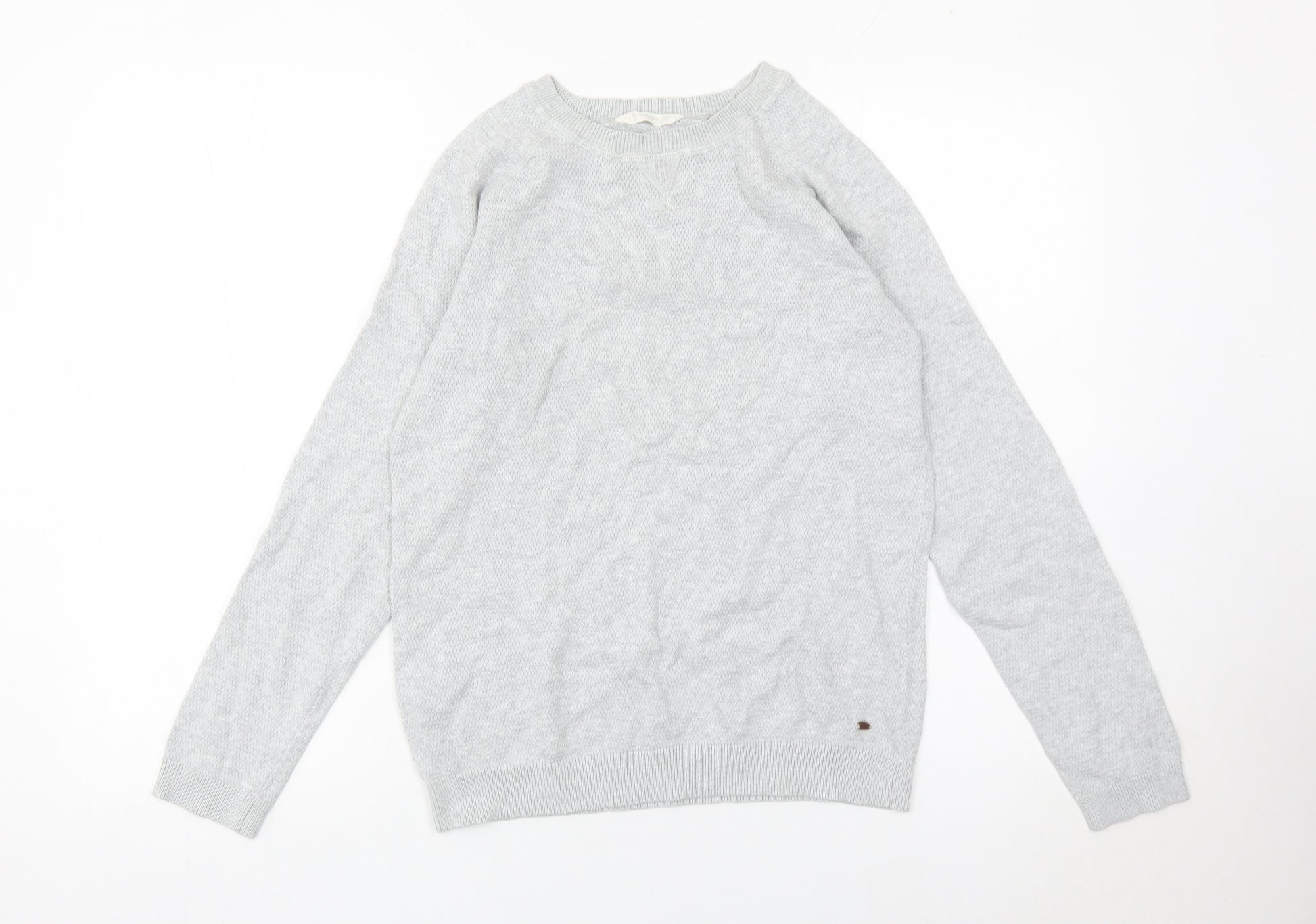 Boys Grey Cotton Pullover Jumper 13-14 Years Crew Neck Knitwear