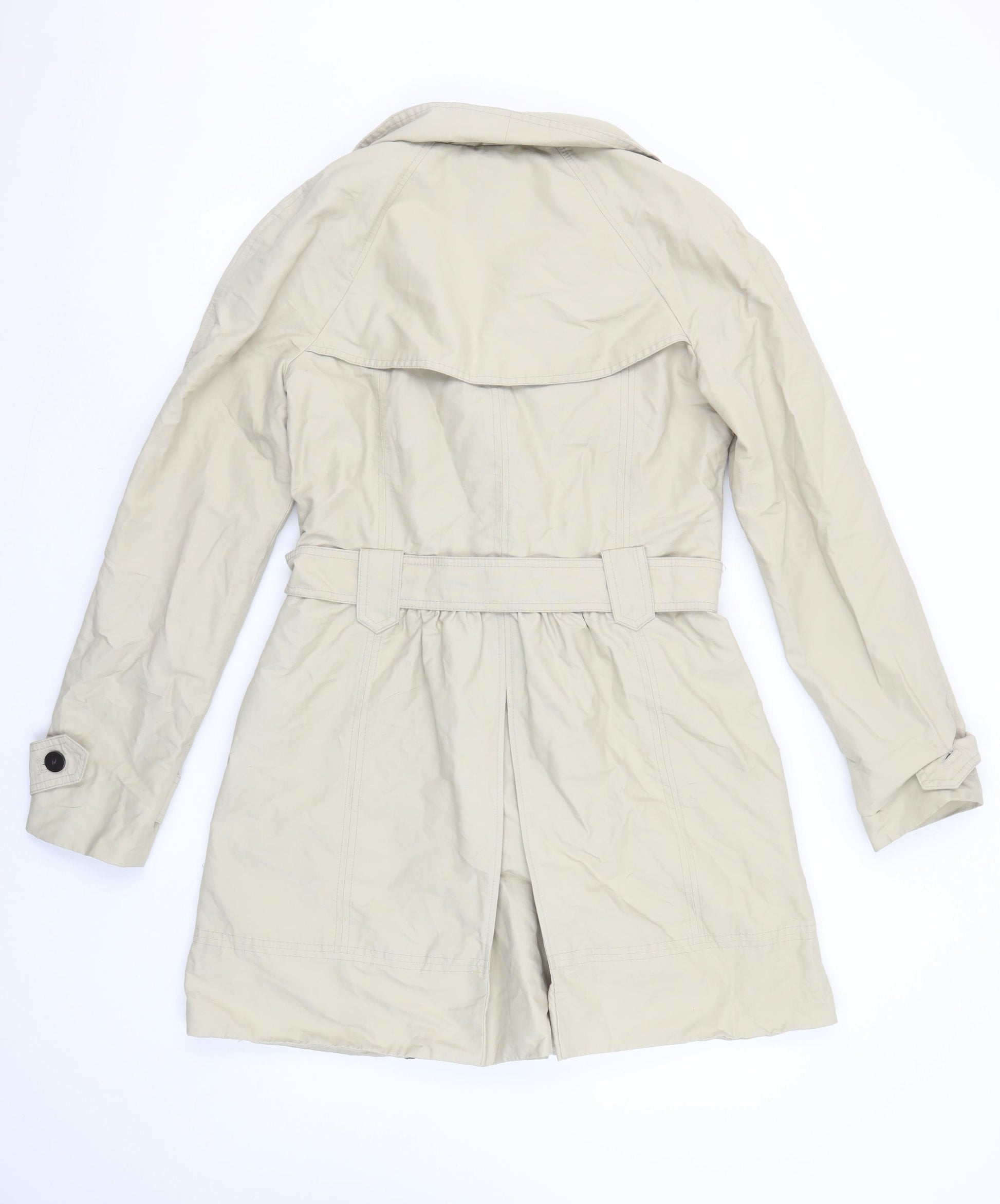 Women Beige Trench Coat Size 12 Belted Classic Mid-Length