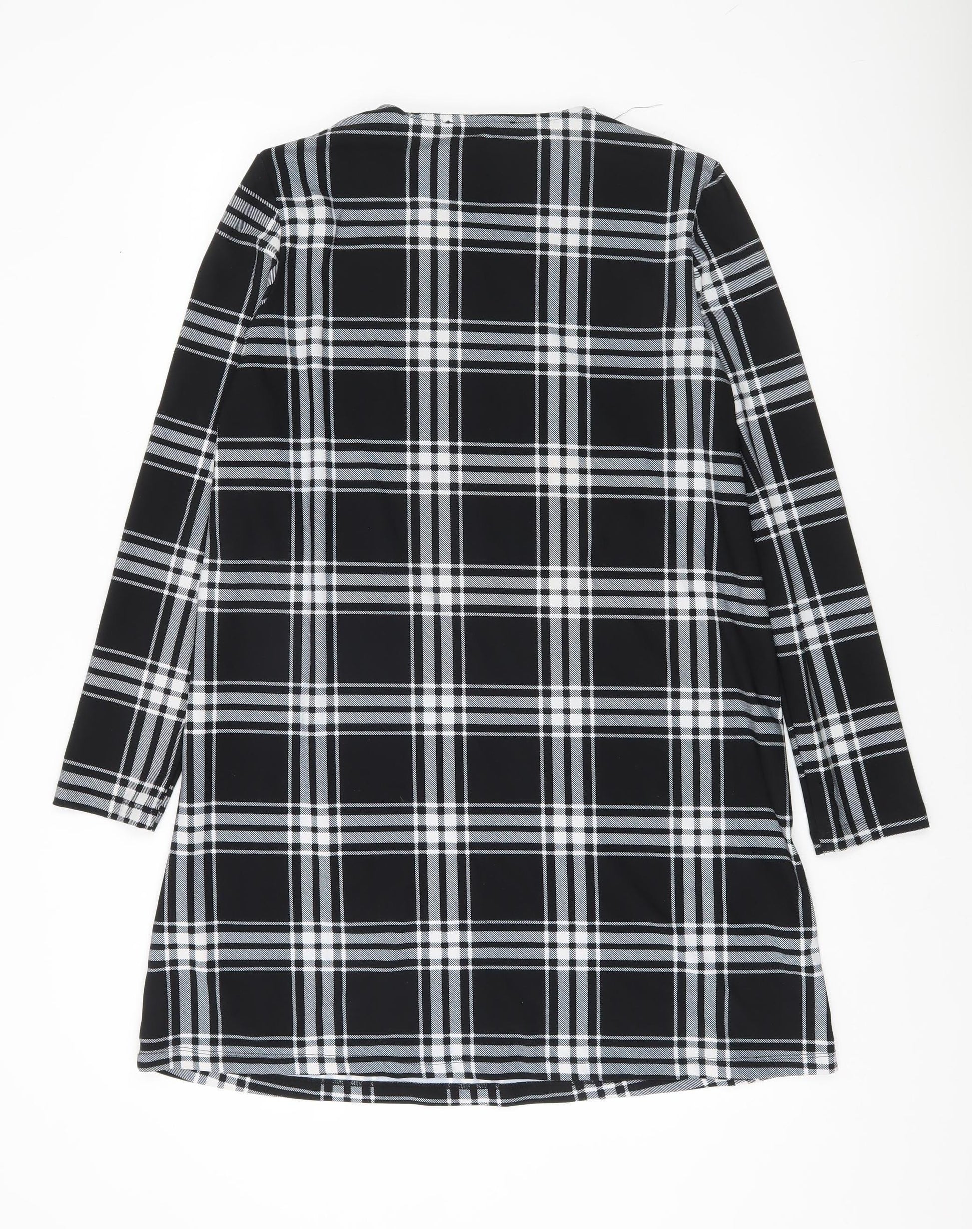 Women Black Check Shift Dress Size 10 Long Sleeve