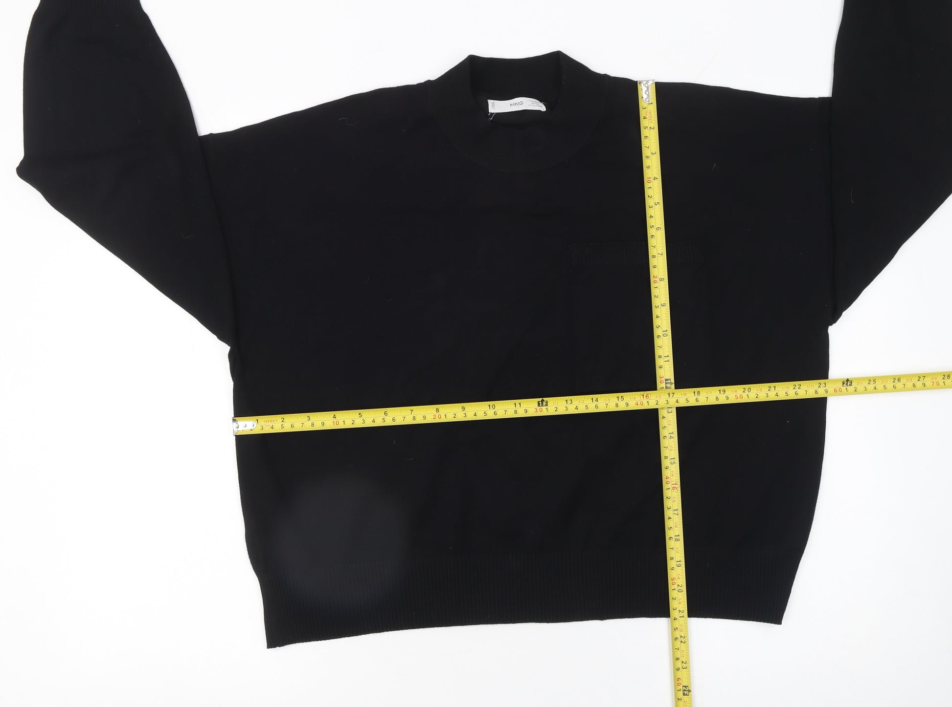 Elevate your everyday wardrobe with this stylish black cotton pullover jumper from Mango. Designed for comfort and effortless chic, this women’s jumper features a modern mock neck that provides a flattering, contemporary silhouette. The clean design, complete with a subtle chest pocket detail, makes it perfect for layering or wearing on its own for a minimalist look. Crafted from 100% cotton, the lightweight knit ensures breathability and softness against the skin, ideal for transitional weather throughout autumn, spring, and even into winter. The long sleeve relaxed fit enhances comfort and allows easy movement, while the tight-knit finish gives it a premium touch and refined texture. Whether you're dressing casually for a day out or creating an understated outfit for work, this jumper offers timeless elegance that pairs beautifully with jeans, trousers, or a skirt. Suitable for casual and everyday wear, this piece captures the essence of minimalist sophistication with Mango's signature quality construction. Though gently used, it remains in excellent condition with only minimal signs of wear, ensuring many more wears to come. Machine washable for convenience, this jumper strikes the perfect balance between style, comfort, and practicality. A must-have essential for any modern woman's wardrobe, this Mango black mock neck jumper embodies understated luxury at an affordable price, ready to elevate your seasonal style effortlessly.