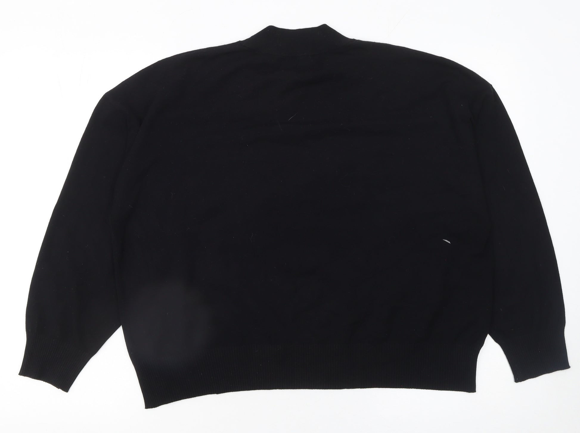 Women Black Mock Neck Cotton Knit Pullover Jumper XL