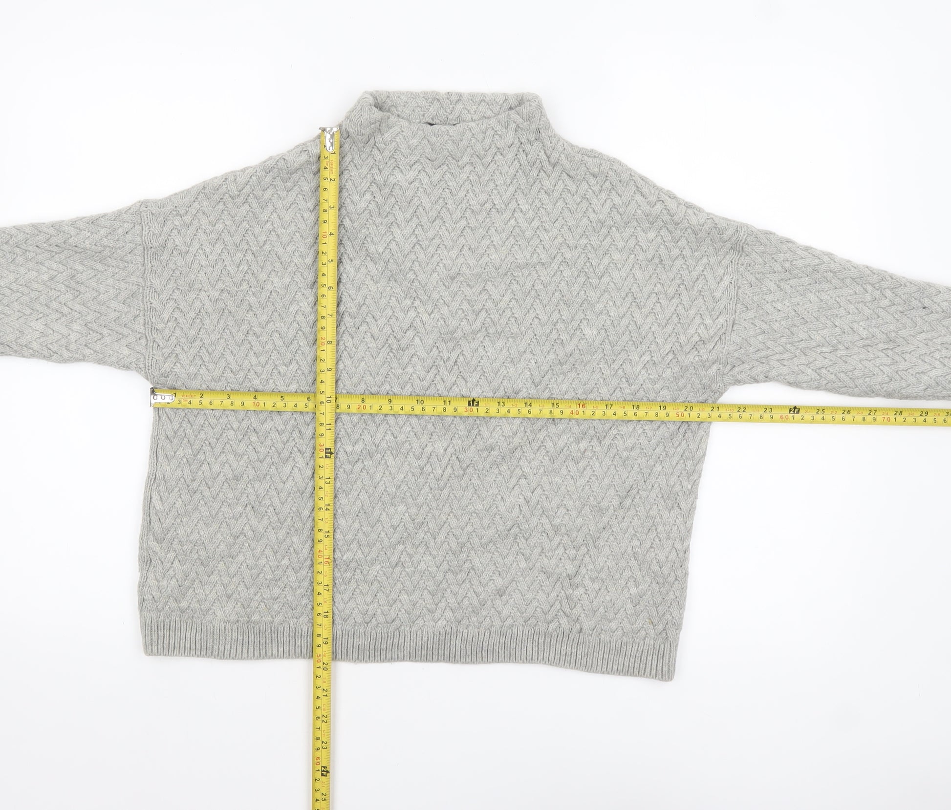 Women Grey Mock Neck Cable-Knit Acrylic Jumper Size 10