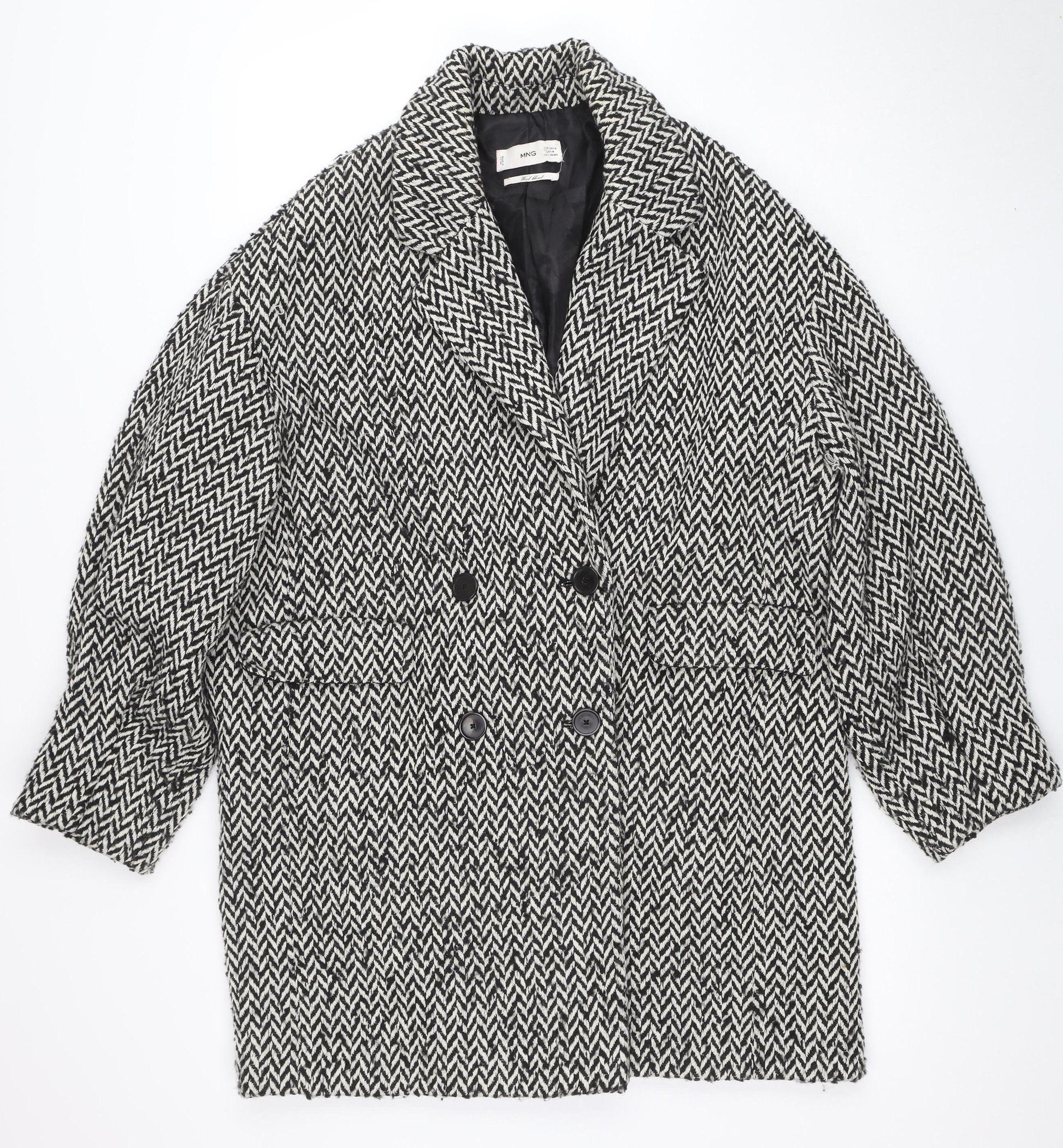 Women’s Black Herringbone Wool Blend Mid-Length Coat Size M