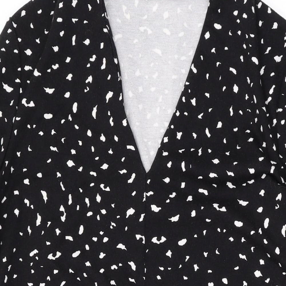 Womens Black Geometric Polyester A-Line Size M V-Neck Pullover