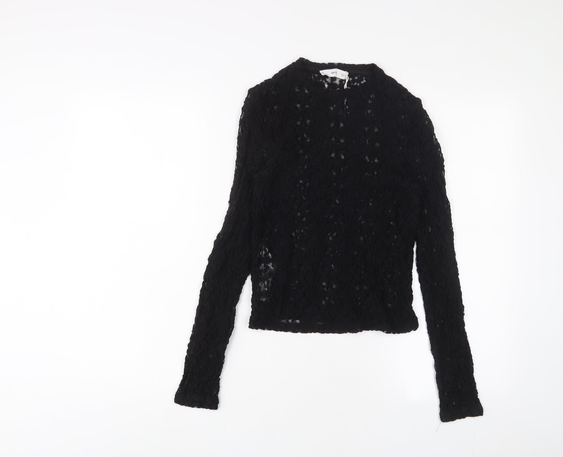 Womens Black Polyester Basic T-Shirt Size M Crew Neck
