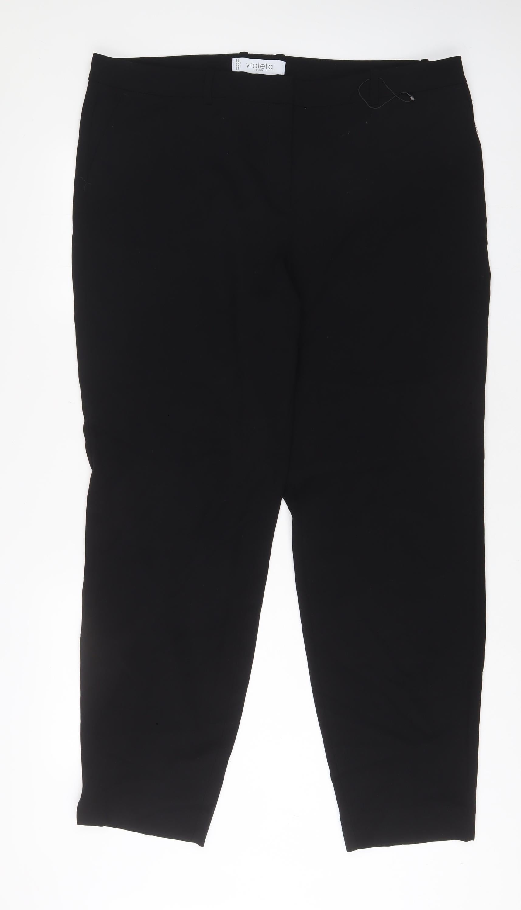 Womens Black Polyester Trousers Size 22 L31 in Regular Hook & Eye