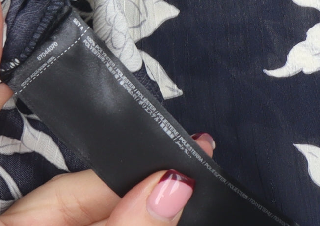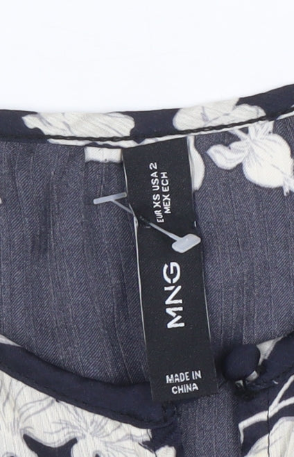 This beautiful women’s blouse from Mango captures an effortlessly feminine charm, perfect for both casual and evening occasions. Crafted from 100% polyester chiffon, the fabric offers a lightweight, breathable, and flowing feel that adds elegance and comfort to your wardrobe. The delicate blue tone is beautifully accented with a soft white floral print, creating a timeless look that embodies both modern style and classic appeal. Featuring long balloon sleeves finished with subtle tie details at the cuffs, the blouse radiates bohemian sophistication. A flattering V-neckline and front button closure add refined touches while maintaining versatility — ideal for pairing with jeans for a relaxed day look or a statement skirt for a dressier outing. The cropped fit gives it a contemporary silhouette that flatters all figures, making it perfect for layering with high-waisted pieces. Suitable for spring and summer seasons, the airy fabric ensures an easy, cool wear in warmer weather. This piece falls under the Casual and Party/Cocktail occasions, designed to elevate your ensemble effortlessly. The blouse is machine washable, ensuring easy care and longevity in your collection. Although pre-owned, it remains in excellent condition with no visible flaws, maintaining its original quality appearance. Its versatile style pairs beautifully with neutral or denim tones, making it an essential piece for any woman’s wardrobe. Ideal for those who appreciate subtle floral elegance and relaxed sophistication, this Mango blouse is a wardrobe staple that transitions seamlessly from day to evening. Whether worn tucked in for a polished finish or left loose for a flowy, carefree vibe, it brings understated elegance to any outfit. Update your collection with this flattering, lightweight Mango floral chiffon blouse — perfect for expressing timeless, feminine style.