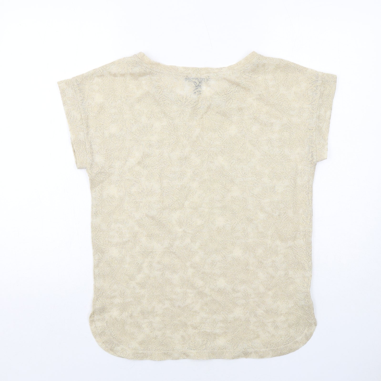 Womens Gold Geometric Polyester Basic Blouse Size S Round Neck