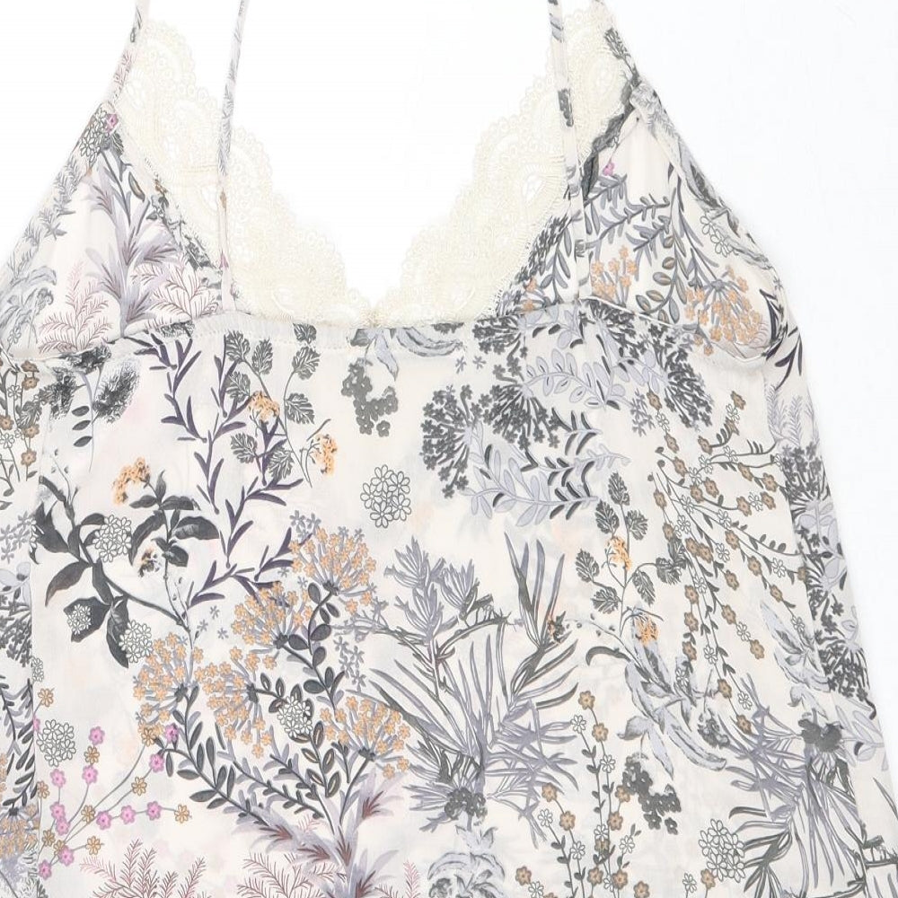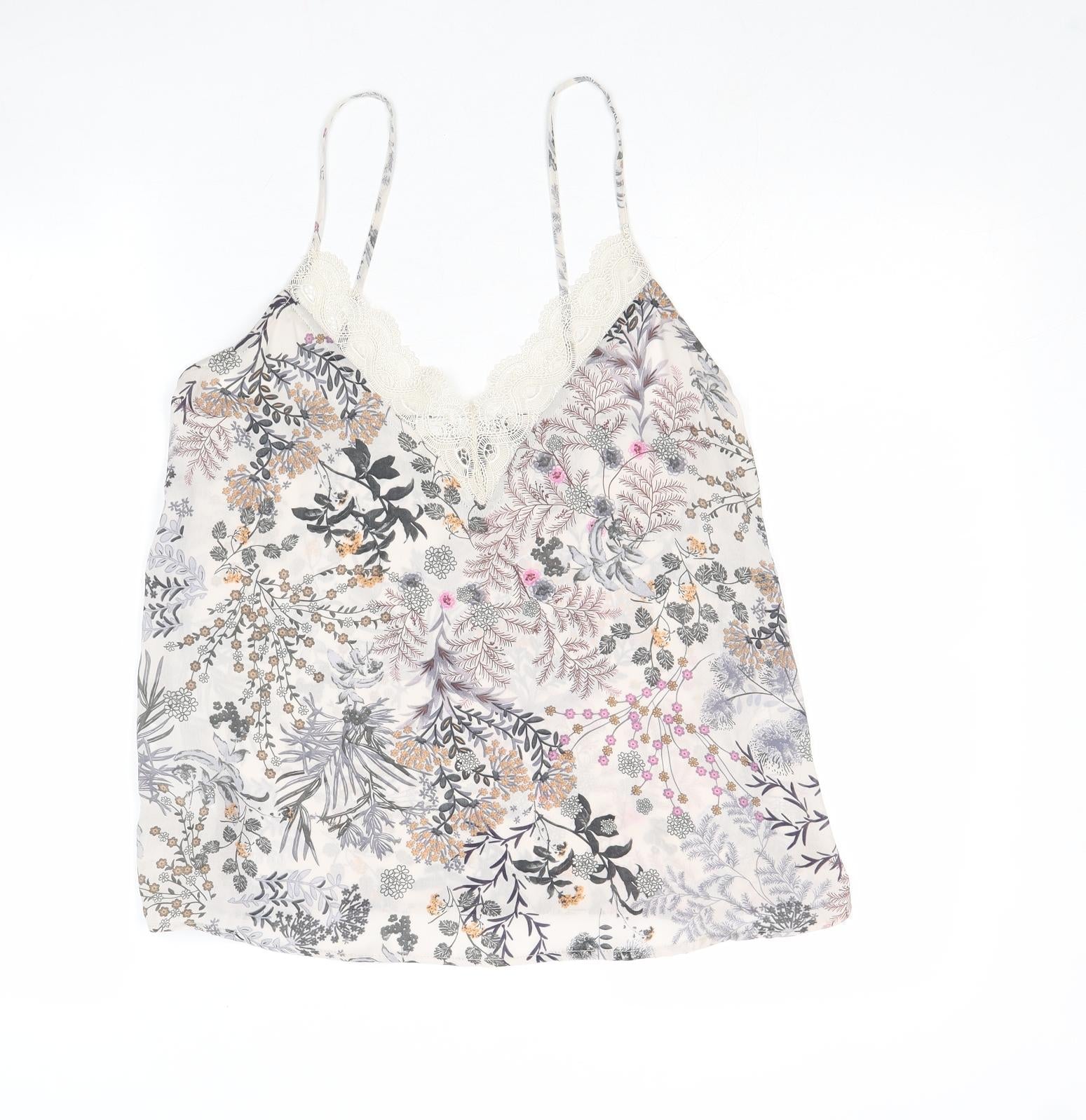 Womens Multicoloured Geometric Polyester Basic Tank Size S V-Neck - Leaf Print