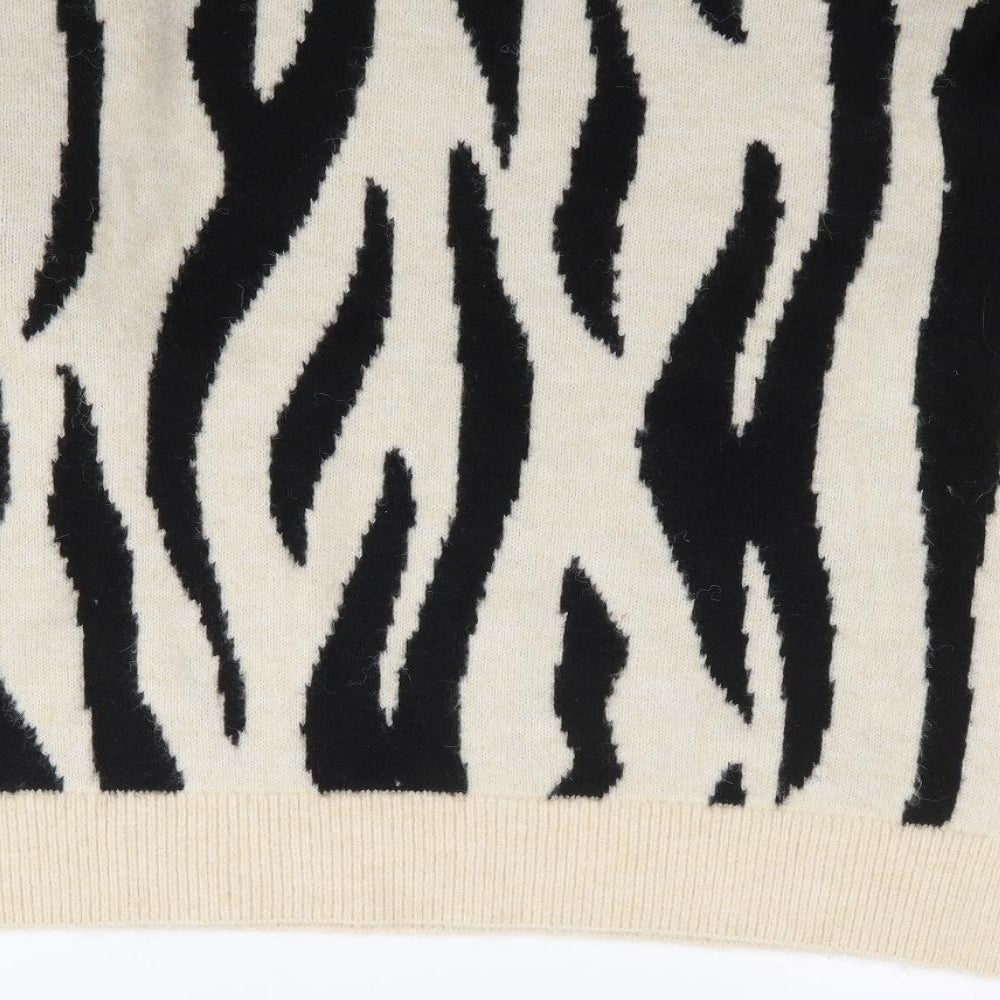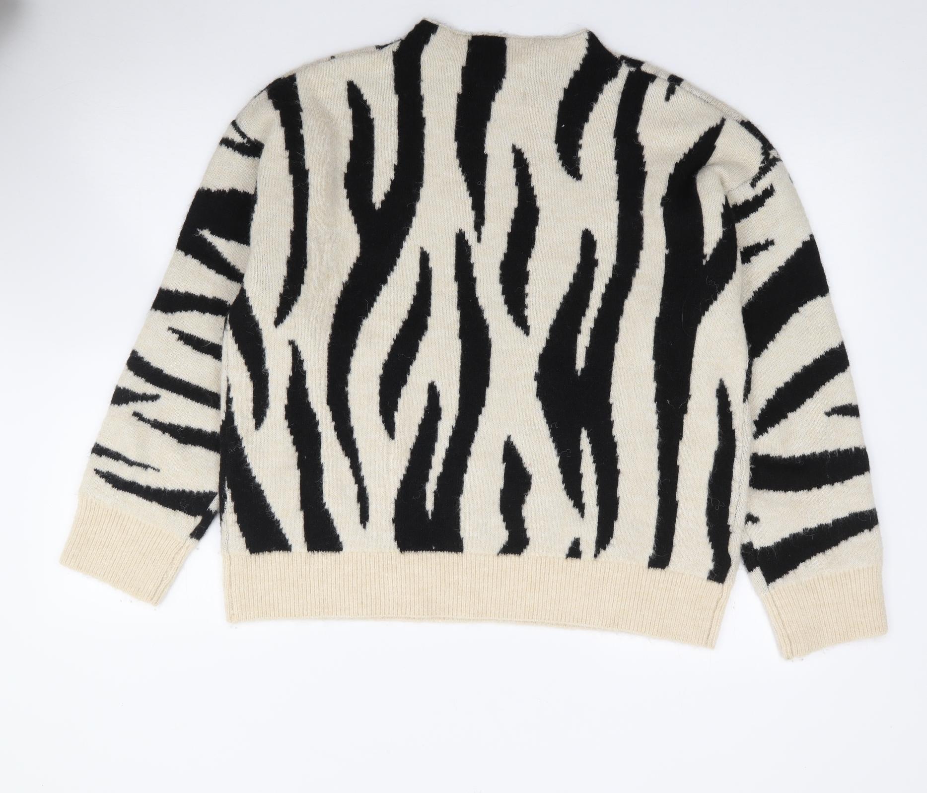 Womens Multicoloured Mock Neck Animal Print Polyester Pullover Jumper Size L