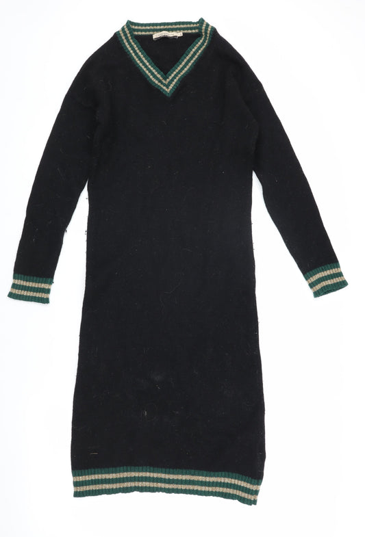 Womens Size S Striped Wool Blend Black Dress (Regular)