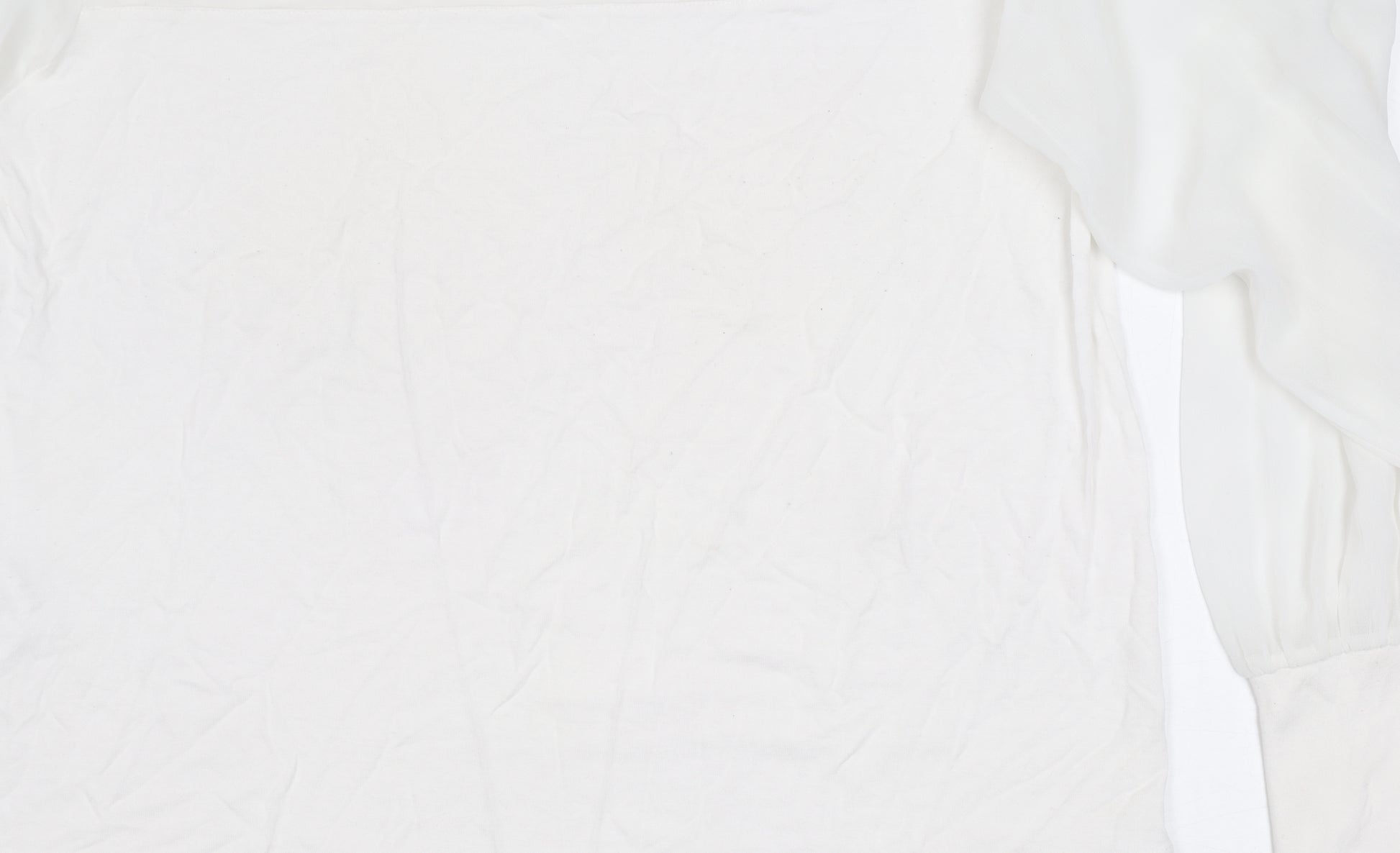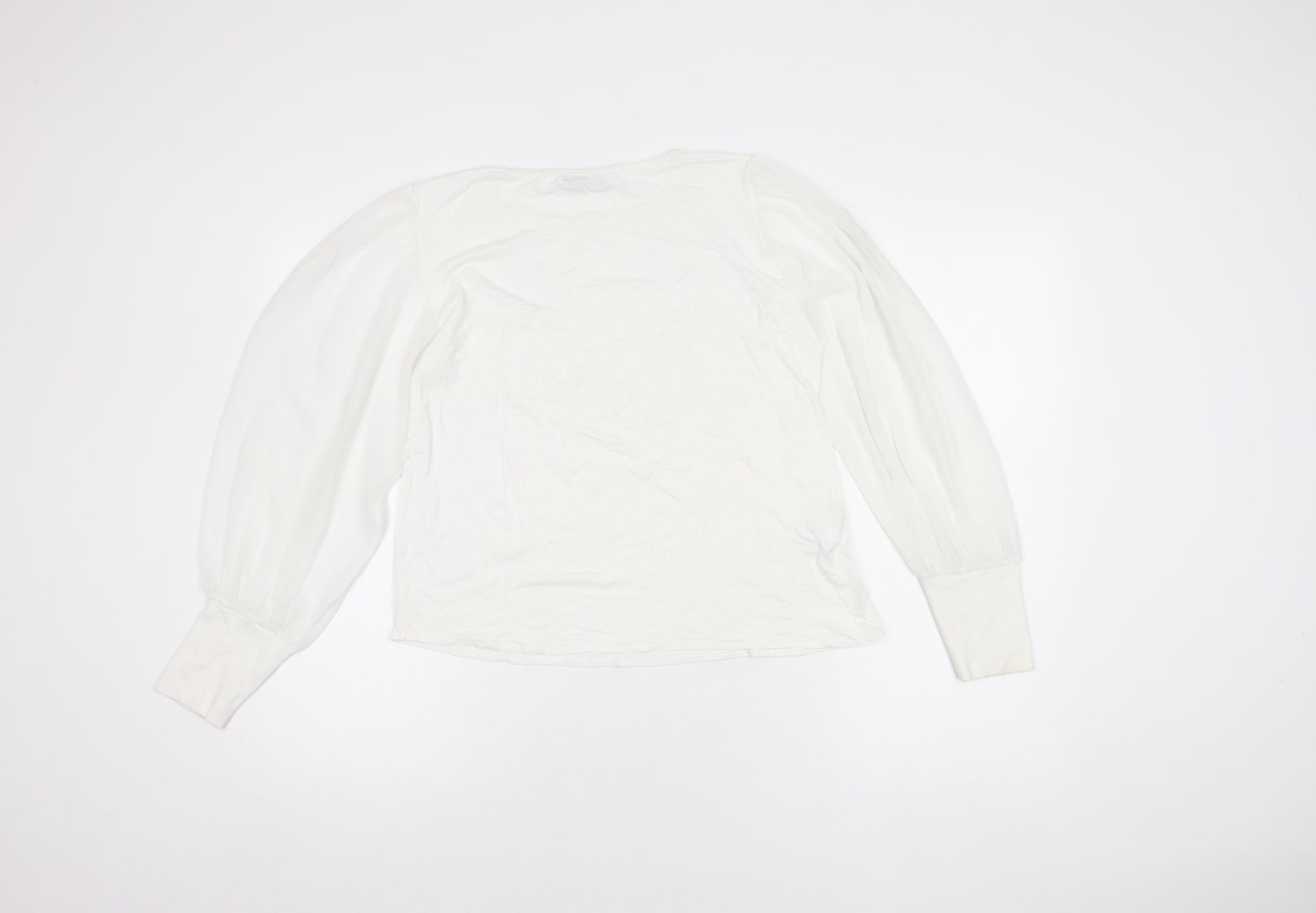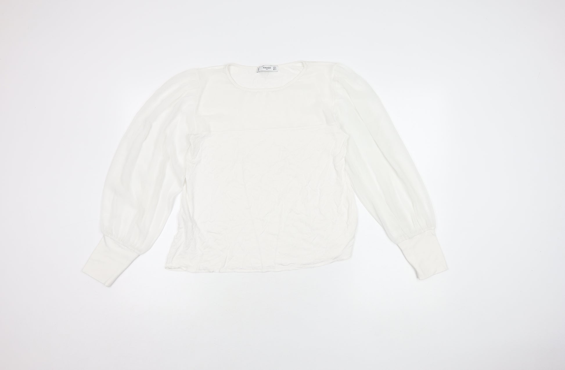 Elevate your everyday wardrobe with this timeless white Mango blouse, perfect for both casual outings and stylish meetings. Crafted for comfort, this women's top features a soft, smooth finish enriched with a blend of viscose and elastane, offering a relaxed, breathable fit. Its solid white colour allows for versatile styling, while the classic round neck and charming balloon sleeves add subtle elegance and flair. Machine washable for your convenience, it's easy to maintain and always looks refreshing. Designed for regular fit, it's a great piece for layering or wearing alone, making it adaptable for any season. This piece is in excellent condition with minimal signs of wear, characterised by some light creasing that doesn't detract from the overall aesthetic. Priced to offer great value, it's a stylish staple that will add sophistication to your outfit choices. Ideal for those who appreciate classic basics with a contemporary twist.