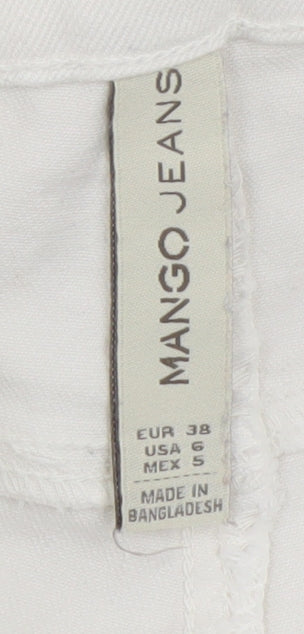 Enhance your wardrobe with these stylish Mango Women's White Denim Cut-Off Shorts, designed for a fresh, casual look. Perfect for warm weather, these shorts blend comfort and fashion effortlessly. Made from a high-quality cotton and elastane mix, the shorts are soft with a slight stretch for added ease of movement. Their regular fit and mid-rise design provide a flattering silhouette, suitable for a day out in the sun or a casual stroll. Featuring a classic 5-pocket style, they offer practicality alongside their chic cut-off look. The crisp white colour ensures versatility, pairing easily with any top in your collection. Fastened with a button and zip closure, these shorts are easy to wear, and machine washable for convenient care. Ideal for spring and summer, these cut-offs are a wardrobe essential for any fashion-forward woman. In excellent condition, with no signs of wear, they come at an unbeatable price. Don't miss the chance to add these must-have shorts to your collection and enjoy effortless style season after season.