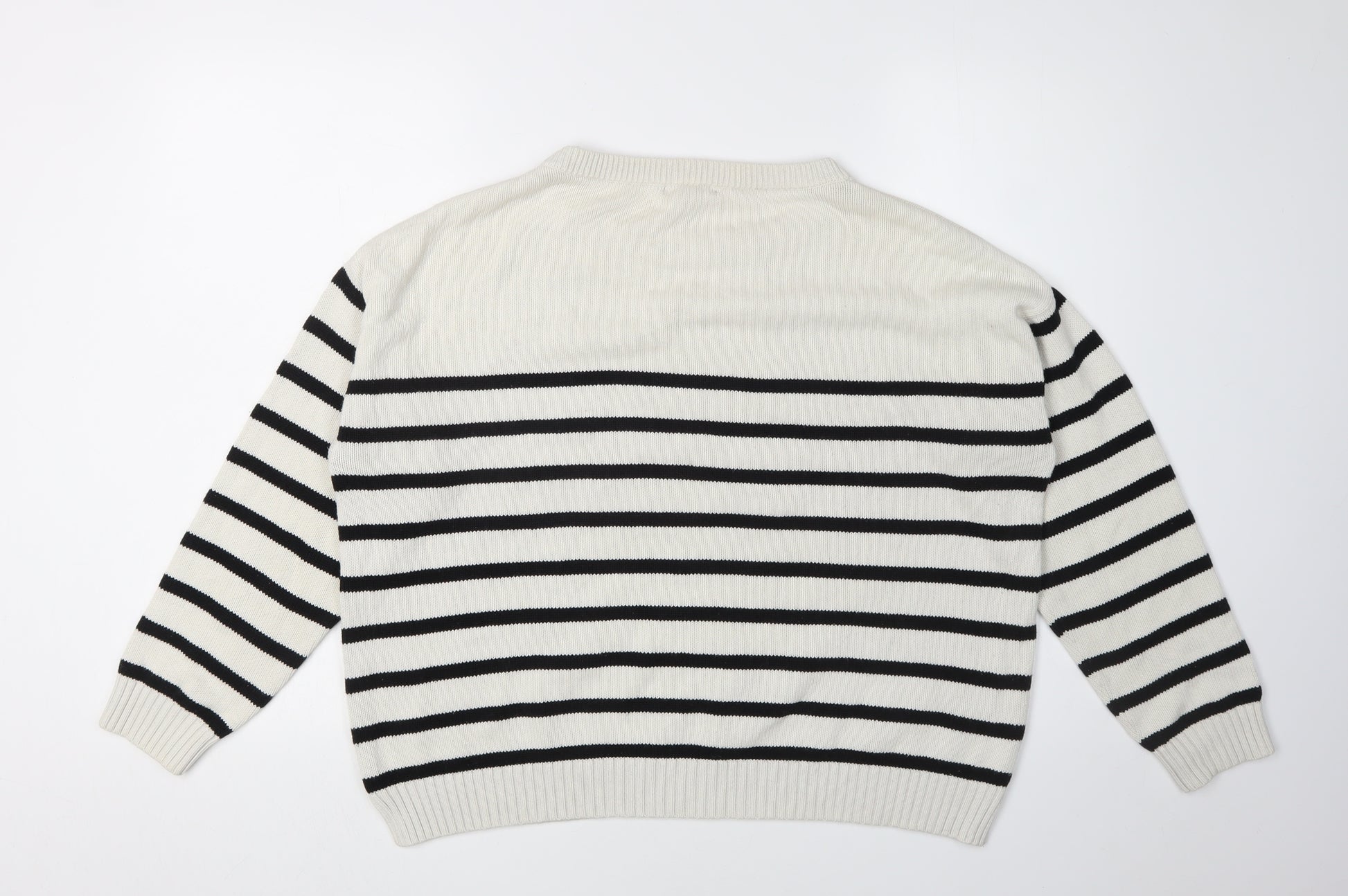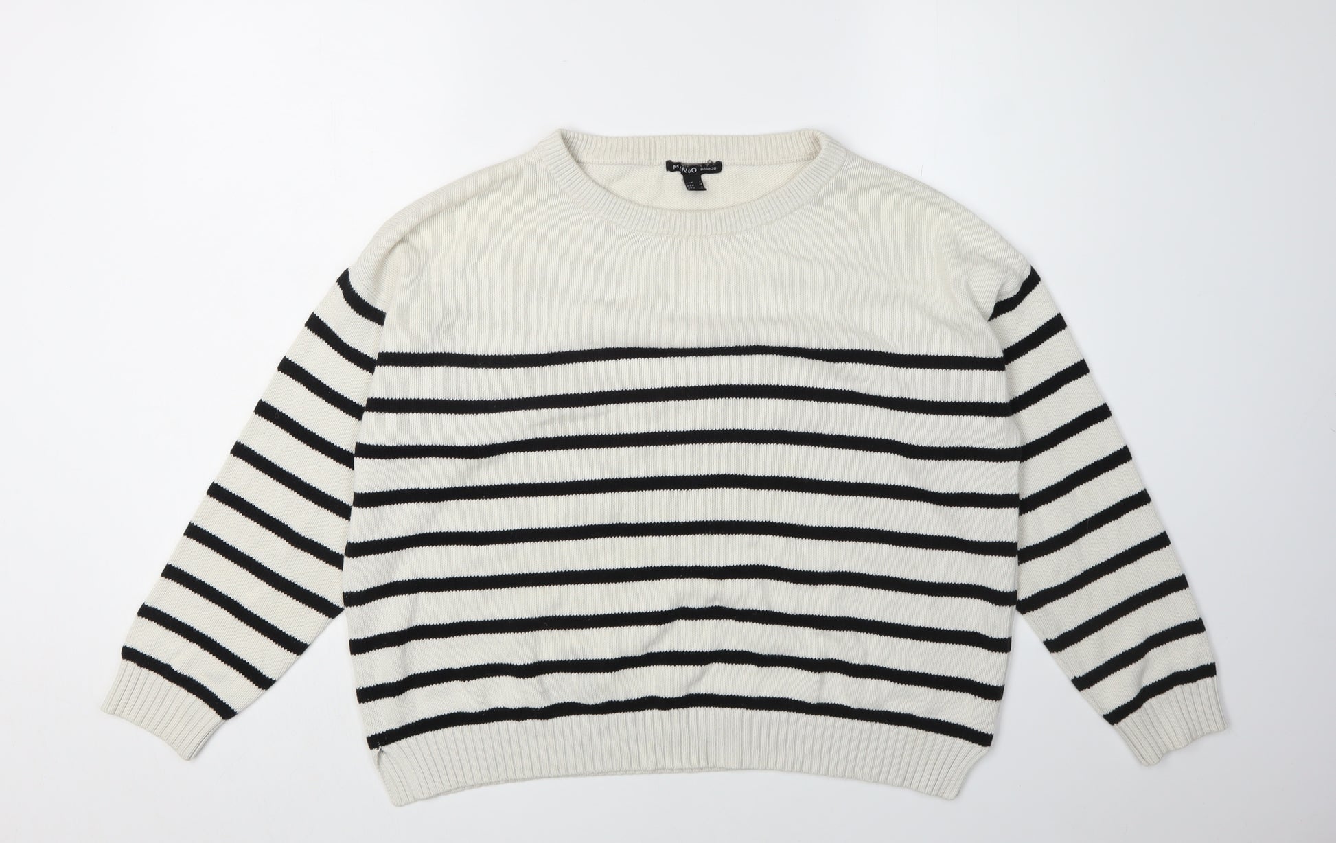 Elevate your wardrobe with this classic Women's Pullover Jumper from Mango. Designed with a timeless striped pattern, this jumper combines sophistication with a hint of nautical flair. Crafted from high-quality cotton, it offers both comfort and durability, perfect for cooler days. The clean white colour is contrasted beautifully with black stripes, adding a chic touch to any outfit. Ideal for casual occasions, this jumper features a round neck and long sleeves, making it a versatile addition to your collection. Whether you're heading to a relaxed brunch or a walk in the park, this jumper promises to keep you warm and stylish. Choose this piece for a blend of classic style and daily comfort.