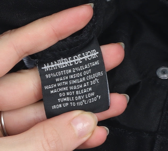 Step into modern street style with these sleek black skinny jeans from Manière De Voir, designed for the fashion-forward man who values comfort, fit, and detail. Crafted from a premium denim blend of 98% cotton and 2% elastane, these jeans offer a stretch fit that moves with you while maintaining a sharp silhouette. The slim cut creates a contemporary, tailored look that works effortlessly from casual days out to edgy evening wear. The jeans feature distinctive distressing and paint-splatter effects across both legs, adding an authentic worn-in aesthetic that embodies the grunge and punk-inspired style currently trending in urban fashion. Designed with practical five-pocket styling and a traditional button and zip fly closure, they maintain both classic jean functionality and bold design character. The dark wash complements the artistic detailing, making these jeans perfect for pairing with everything from graphic tees and leather jackets to casual shirts and trainers. The medium-rise waist ensures a balanced fit that feels both comfortable and flattering. These jeans are machine washable and easy to care for, ideal for everyday wear without sacrificing premium design. In excellent condition with only minimal signs of previous use, the denim fabric remains vibrant and durable, providing great value for your wardrobe. Suitable for autumn, spring, and winter seasons, they deliver a versatile foundation for modern dressing. A great example of Manière De Voir’s reputation for combining classic craftsmanship with forward-thinking design, this piece is a must-have for those who love urban streetwear with personality and an edge. Make a powerful impression wherever you go with this standout pair of slim fit distressed jeans.
