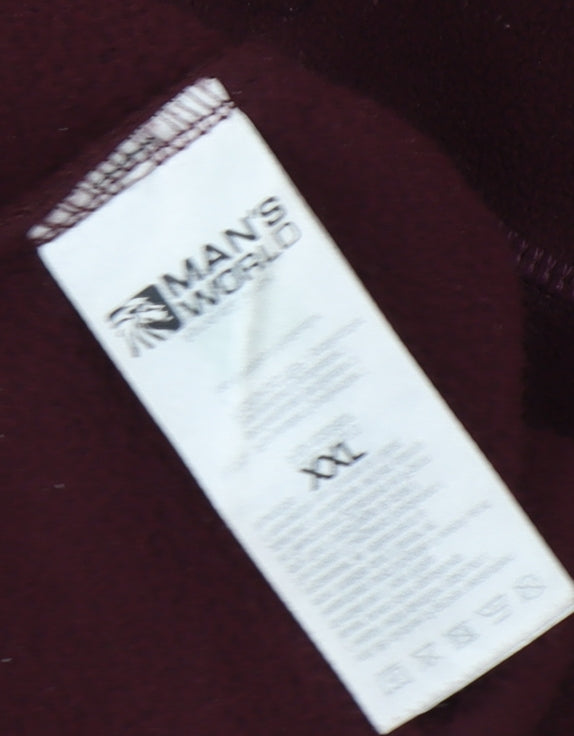 Introducing the Man's World Men's Sweatshirt in an elegant wine-red shade. Crafted with premium polyester fleece, this pullover is designed to offer maximum comfort and warmth, making it a perfect choice for the cooler months of autumn and winter. The 2XL size ensures a relaxed fit, ideal for layering or wearing on its own. Featuring a convenient 1/4 zip closure and a high neckline, this sweatshirt combines style and function, allowing you to adjust the warmth as needed. The long sleeves provide additional coverage, while the iconic Man's World logo adds a touch of brand sophistication. This versatile piece can be dressed up or down, easily pairing with your favourite pair of jeans or joggers. Although it shows slight wear and some minor marks, it remains in very good condition, ready to wear for casual outings or relaxed work settings. The no-pattern design enhances its classic appeal, making it a staple in any wardrobe. With machine washable care, maintenance is a breeze, ensuring you can enjoy its lightweight cosiness without the fuss. Whether you're heading for a winter walk or simply lounging at home, this Man's World sweatshirt promises to keep you stylishly snug.
