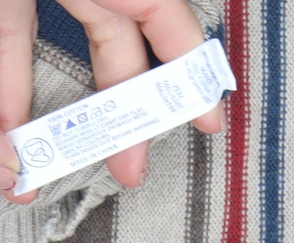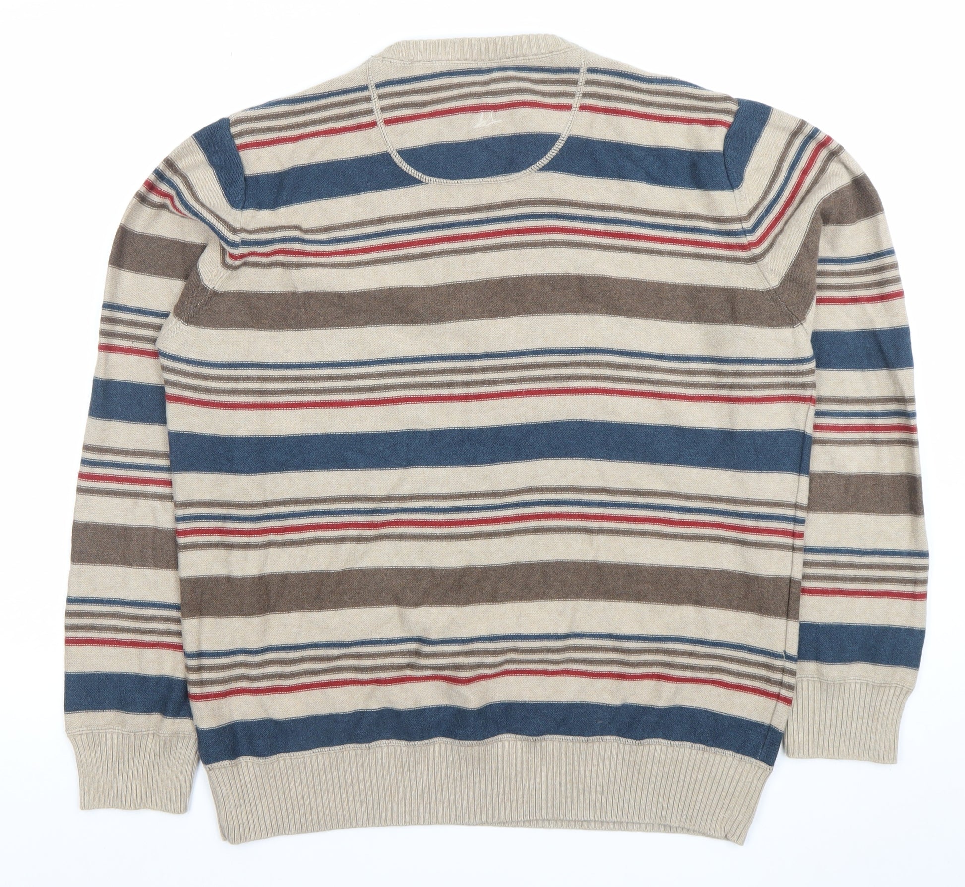 Men’s Beige Striped Cotton Crew Neck Jumper Size L