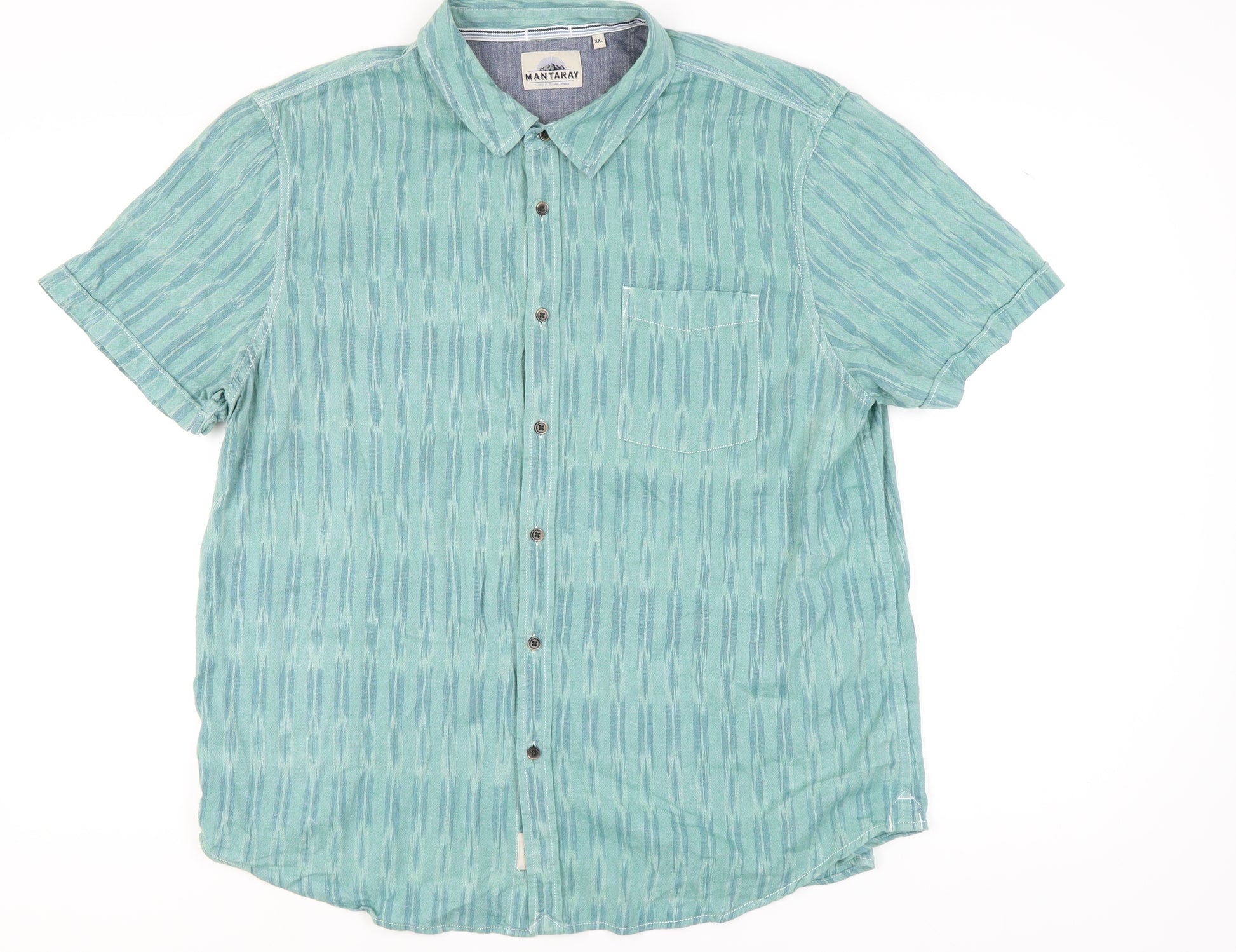 Elevate your wardrobe with this stylish Mantaray Men's Casual Button-Up Shirt in a versatile blue hue. Made from 100% cotton, this shirt offers breathability and comfort, perfect for any casual occasion. Its short sleeves and button-down collar provide a classic look, making it a great fit for summer outings or relaxed gatherings. The shirt features a smart collared neckline and a button closure, allowing for easy wear. Its size 2XL ensures a comfortable fit, and the lack of any noticeable wear or defects makes it an excellent choice. Pair it with jeans or chinos for a laid-back yet polished appearance. A perfect addition to your collection, this shirt is machine washable, ensuring convenience in maintenance. Grab this attractive Mantaray piece today and make it your go-to for effortless style.