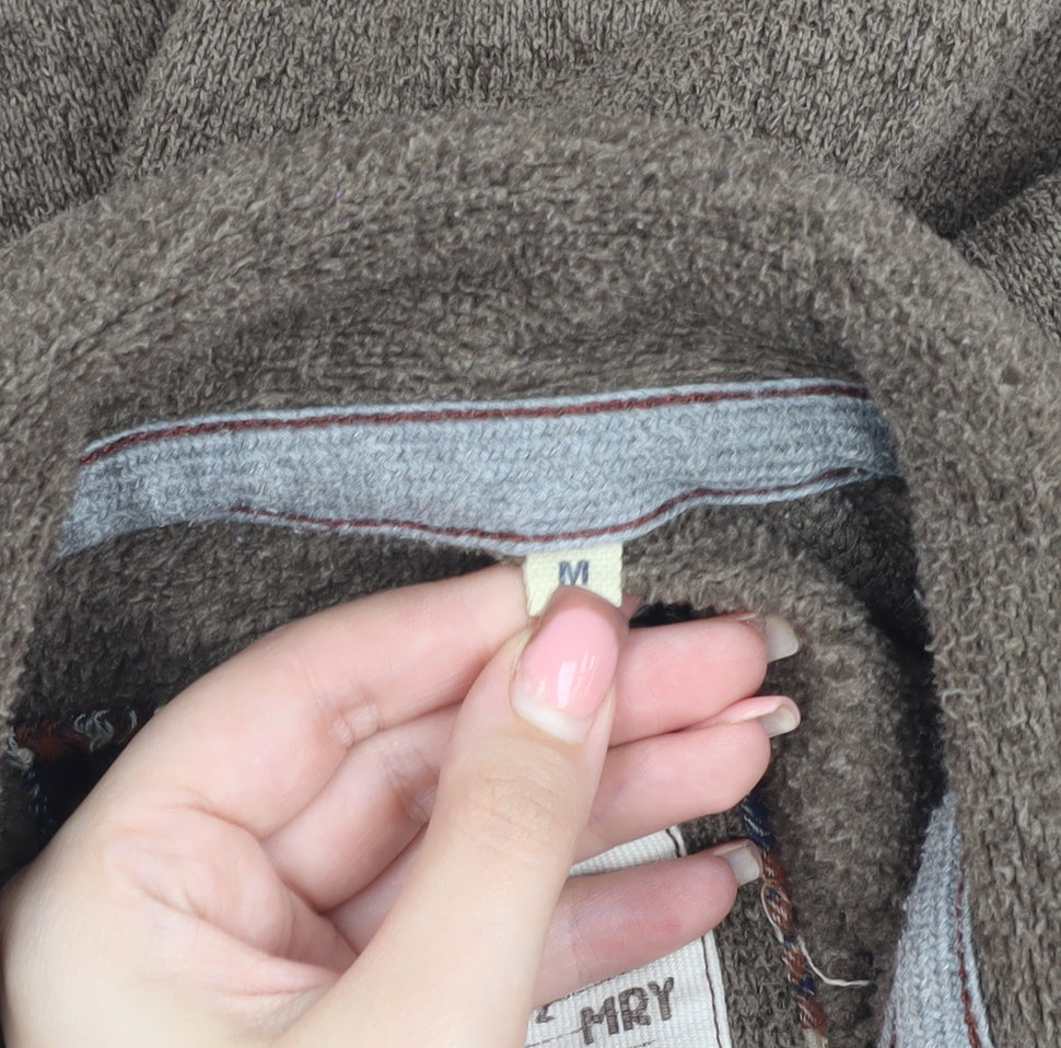H&M Men’s Brown Henley Knit Sweatshirt Jumper Size M Cotton