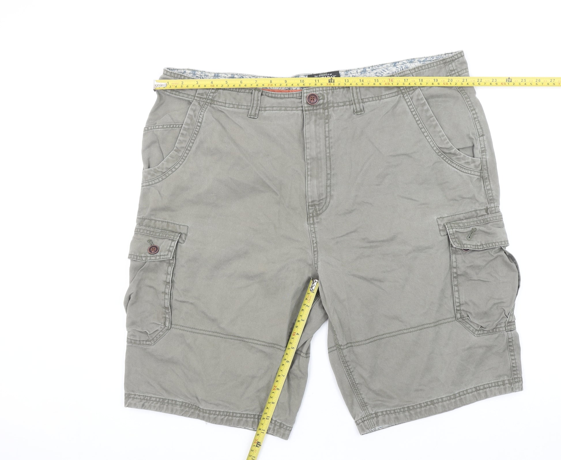 These Mantaray men's cargo shorts are a versatile and stylish addition to any wardrobe, perfect for casual days out or summer holidays. Crafted from 100% cotton, they offer breathable comfort and durability ideal for travel, leisure, and outdoor wear. The muted green colour brings a rugged yet modern look, suitable for pairing with tees or polos. Made in Bangladesh to Mantaray’s trusted quality standards, these shorts feature a mid-rise fit with a flat front and secure button and zip closure. With multiple practical pockets including deep front slash pockets, buttoned cargo and back pockets, these shorts provide functionality and style for everyday use. Their regular fit ensures comfortable wear throughout the day, while the easy-care cotton fabric makes maintenance simple. The shorts display subtle seam detailing and tonal stitching that enhance their casual, outdoorsy appeal. Excellent pre-owned condition, showing light wear but no visible flaws, stains, or damage. Ideal for casual weekends, travel adventures or simply enjoying warm weather in comfort. A great wardrobe staple that balances comfort, utility, and style with the reliable quality Mantaray is known for. Comparable items online suggest a fair used price for this piece at £14.25, making it a great value for anyone seeking durable everyday cargo shorts designed for practicality and laid-back fashion.