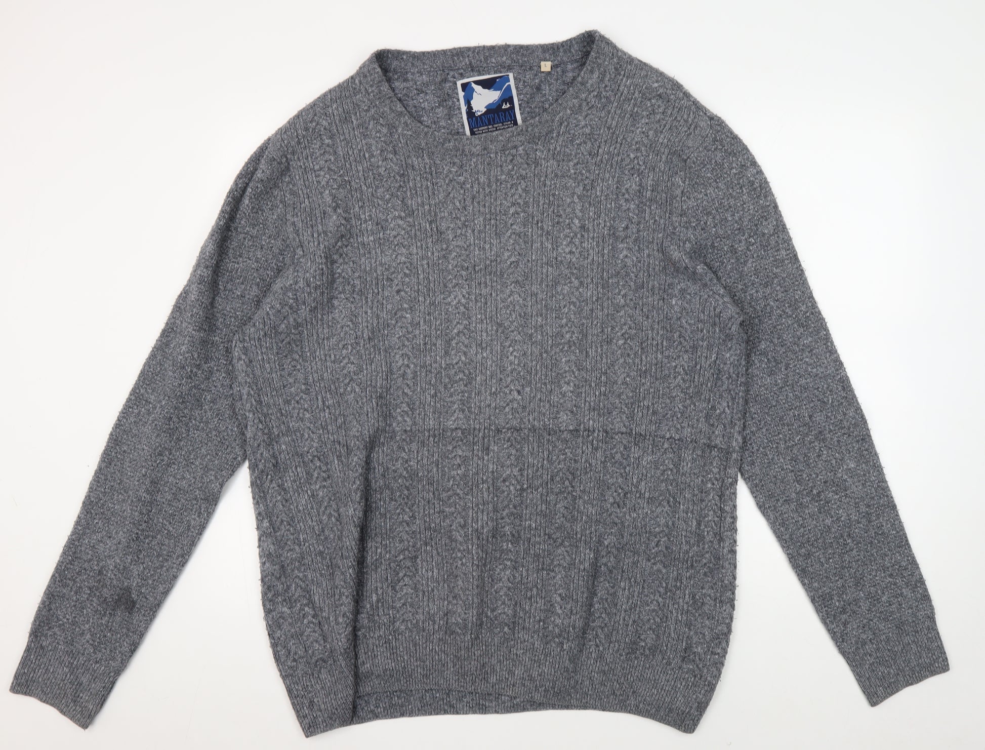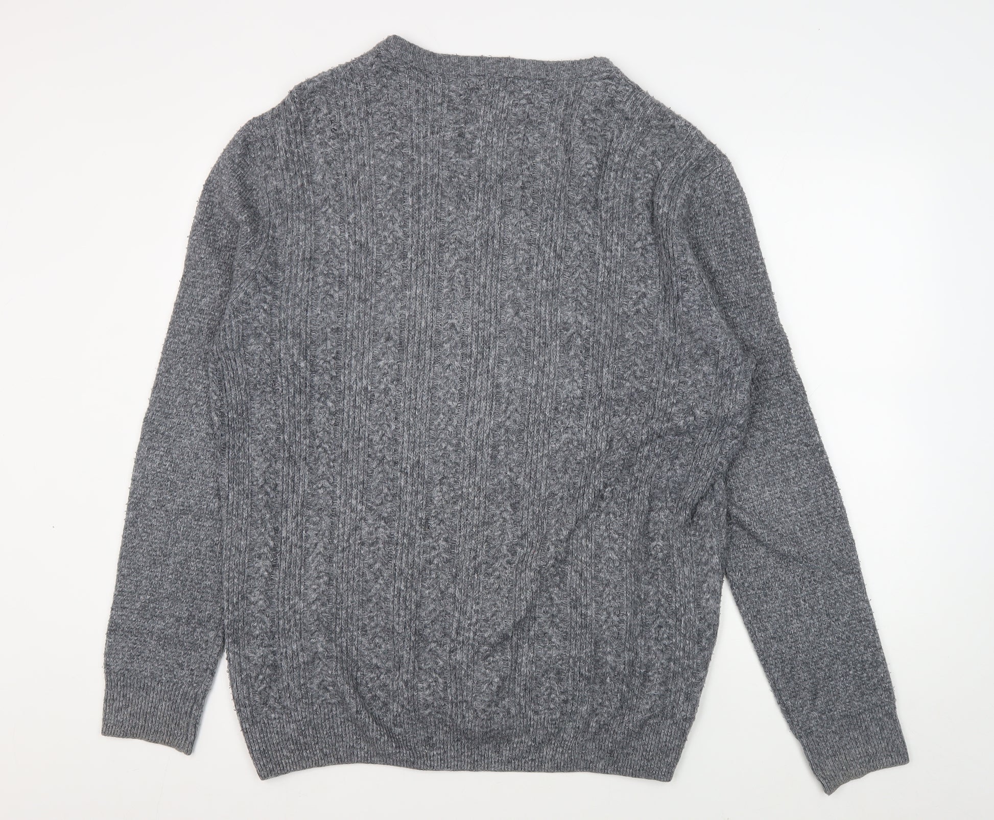 Men's Grey Cable-Knit Pullover Jumper, Size L