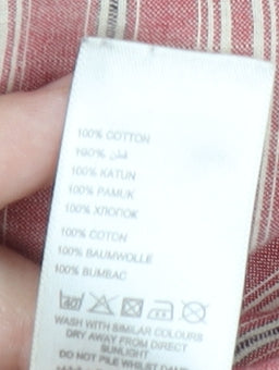 Elevate your casual wardrobe with this stylish Mantaray men's shirt in a sophisticated red stripe design. Crafted from 100% cotton, this shirt promises not only a comfortable fit but also a durable wear that complements your everyday look. The shirt features a classic button-up style, complete with a long-sleeved button-down collar, lending a timeless touch to your attire. Ideal for any casual occasion, this piece is perfect for both relaxed weekends and leisurely outings. Its breathable cotton composition makes it a great addition to your summer wardrobe, while its structured design allows it to transition seamlessly into the cooler months with layered styling. Despite being in excellent condition with no noticeable signs of wear or stains, it retains a fresh look suitable for continued fashionable use. This Mantaray shirt, sized small, is a fine representation of the brand's commitment to quality and style, offering a versatile and comfortable option for fashion-conscious men. Whether you style it tucked or untucked, its adaptable nature makes it a valuable staple certainly worth incorporating into your collection.