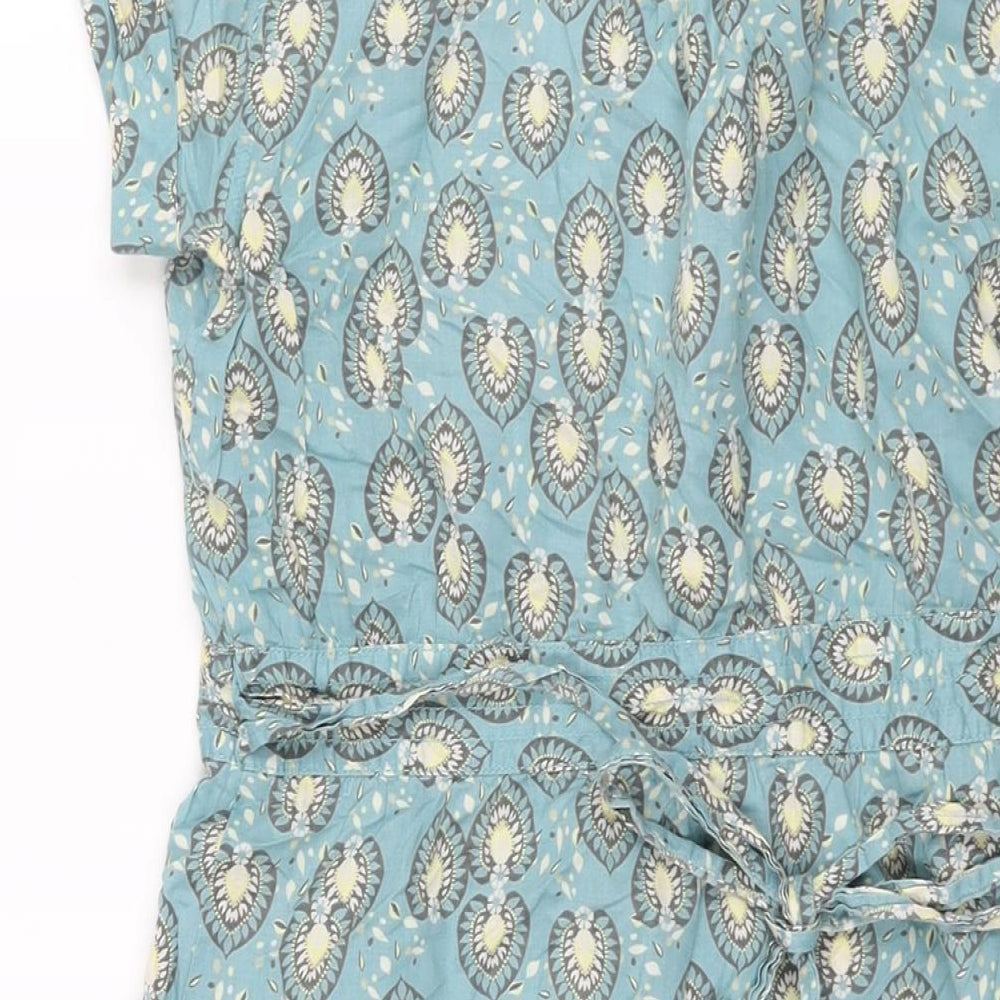Womens Blue Geometric Cotton Shift Size 14 Collared Button - Belted