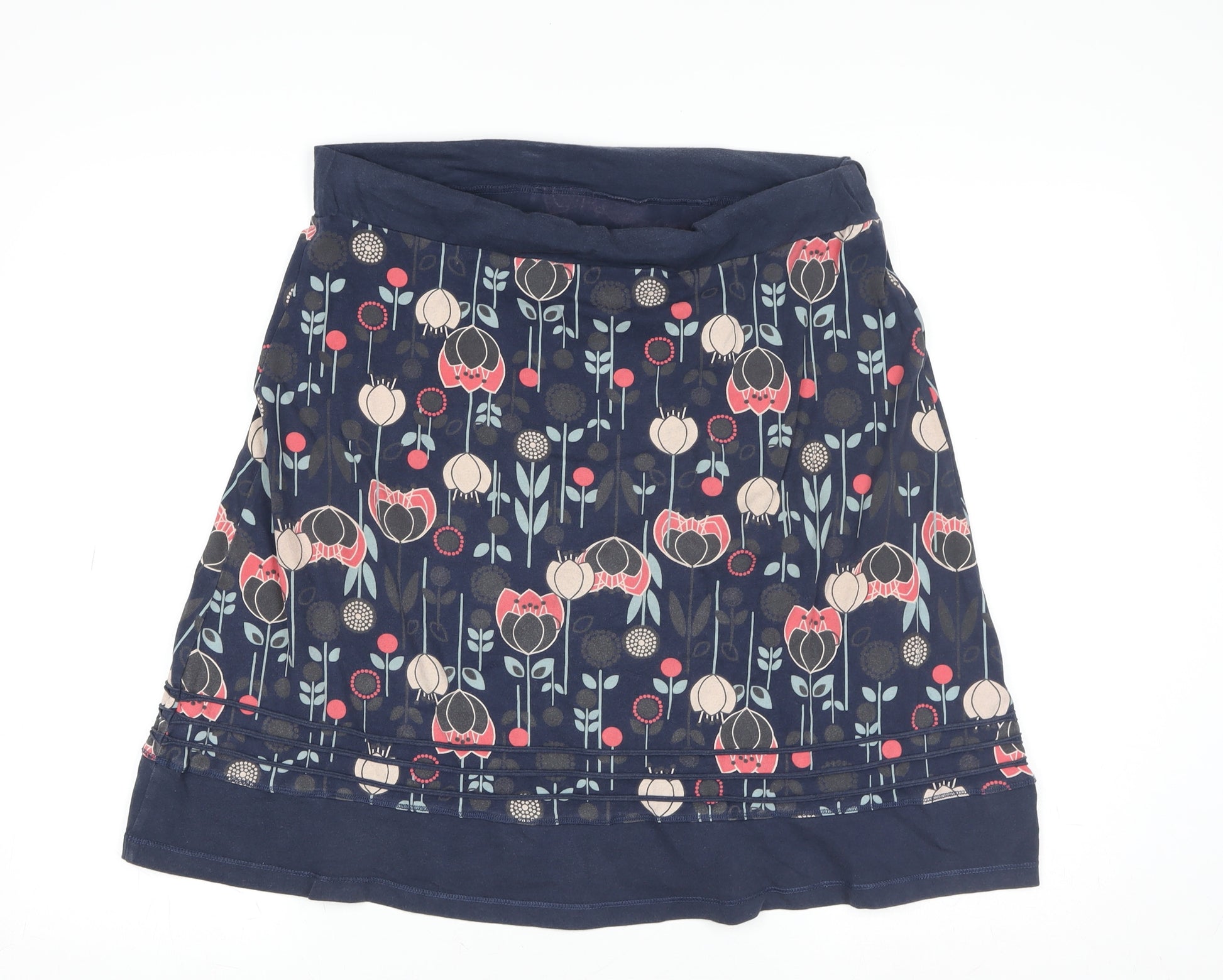 Bring a touch of casual charm to your wardrobe with this lovely women’s floral skirt by Mantaray. Designed in a flattering A-line silhouette, this knee-length skirt offers a comfortable and effortlessly chic look that’s perfect for everyday wear. Crafted from soft, breathable 100% cotton jersey fabric, it ensures a lightweight and easy feel, ideal for spring and summer seasons. The deep blue base is beautifully contrasted with a playful floral print featuring subtle red, cream, and teal tones, giving the skirt a fresh yet timeless appeal. The elastic waistband provides all-day comfort and ease of wear, making it a versatile choice for relaxed weekends, casual outings, or travel. Its simple pull-on design eliminates fuss, while the quality stitching showcases Mantaray’s commitment to great casual style with a bohemian touch. True to the brand’s faithful and free-spirited ethos, this skirt reflects effortless femininity with a nature-inspired theme. The mid-rise waistline complements a range of tops – from simple cotton tees to lightweight knits. Pair it with sandals in the summer or tights and boots during cooler months to enjoy all-season versatility. This pre-loved piece is in very good condition with only gentle wear, maintaining both its shape and vibrant colours. A dependable wardrobe staple with a hint of playful character, it’s an excellent find for anyone seeking laid-back comfort and tasteful design. Perfect for women who love easygoing fashion, this Mantaray A-line floral skirt combines quality, comfort, and style, promising to become one of your go-to favourites for years to come.
