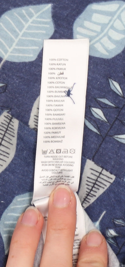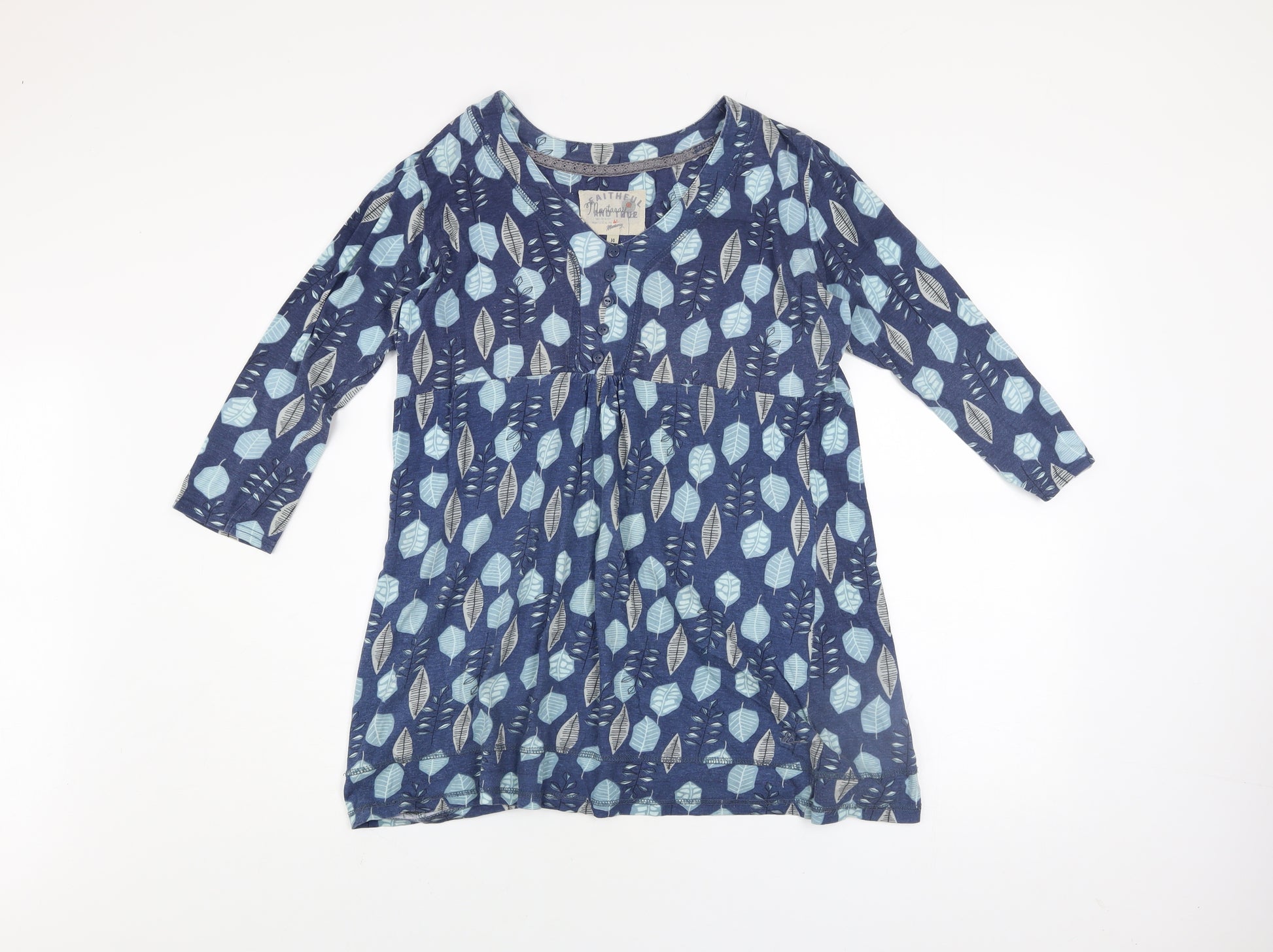 Women’s Blue Leaf Print Cotton Tunic Top Size 14