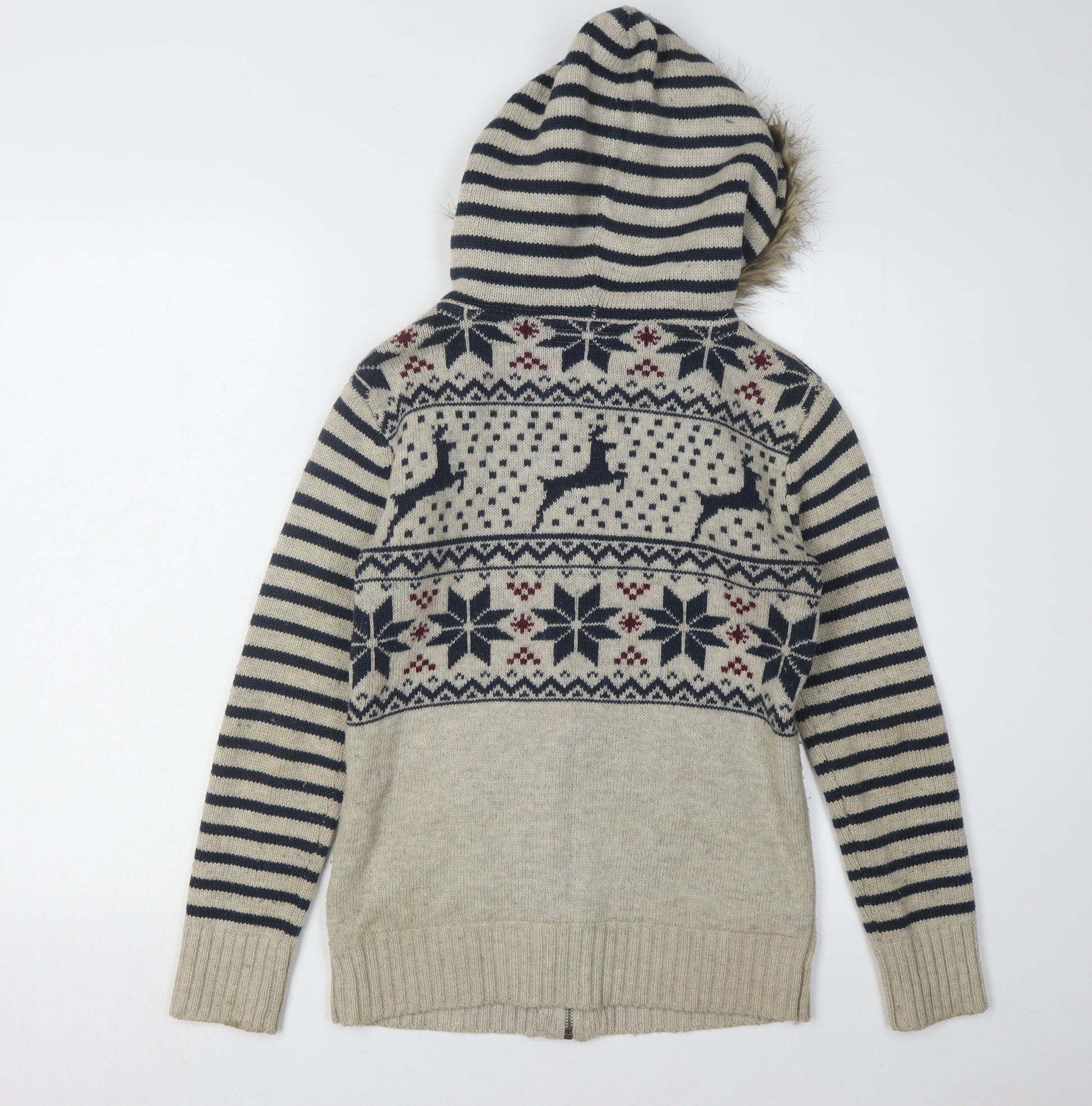 Women’s Grey Fair Isle Hooded Cardigan Size 8