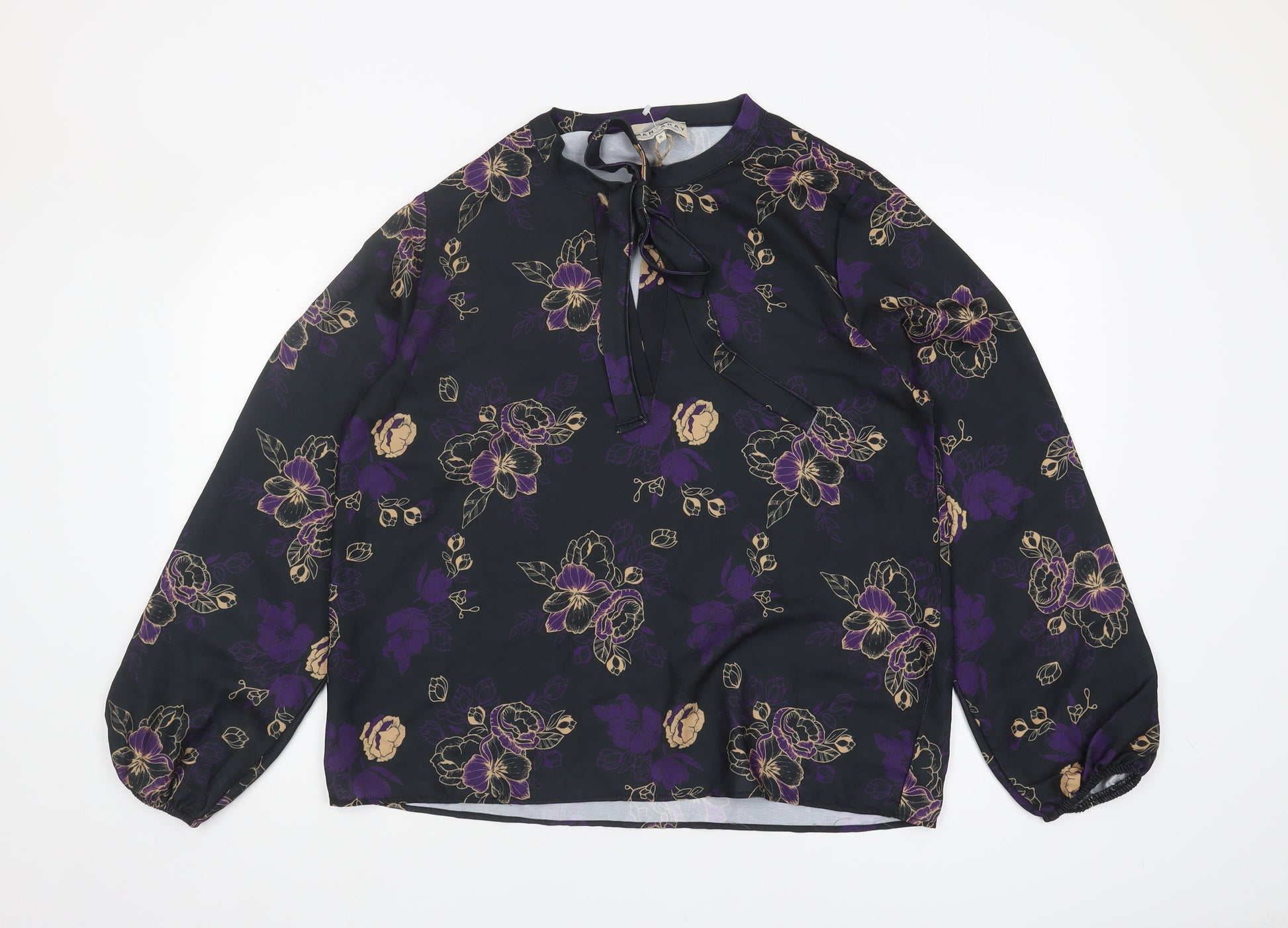 This exquisite Mantaray women's tunic blouse effortlessly blends elegance and comfort, making it a perfect addition to your wardrobe. Crafted from 100% polyester, the blouse promises durability and easy care, allowing for machine washing convenience. The dark floral pattern in a captivating black with purple accents offers a chic, yet versatile style that is idea for both casual and relaxed occasions. Its tunic style with a relaxed fit and long sleeves ensures comfort throughout the day, while the classic/fitted sleeve type with a delightful bow accent and tie neckline adds a touch of feminine charm. Perfect for the transitional seasons of spring and autumn, this blouse is an easy choice for layering or wearing on its own. Whether heading to a casual gathering or just enjoying a leisurely day out, this blouse provides a stylish and comfortable option without compromising on elegance.