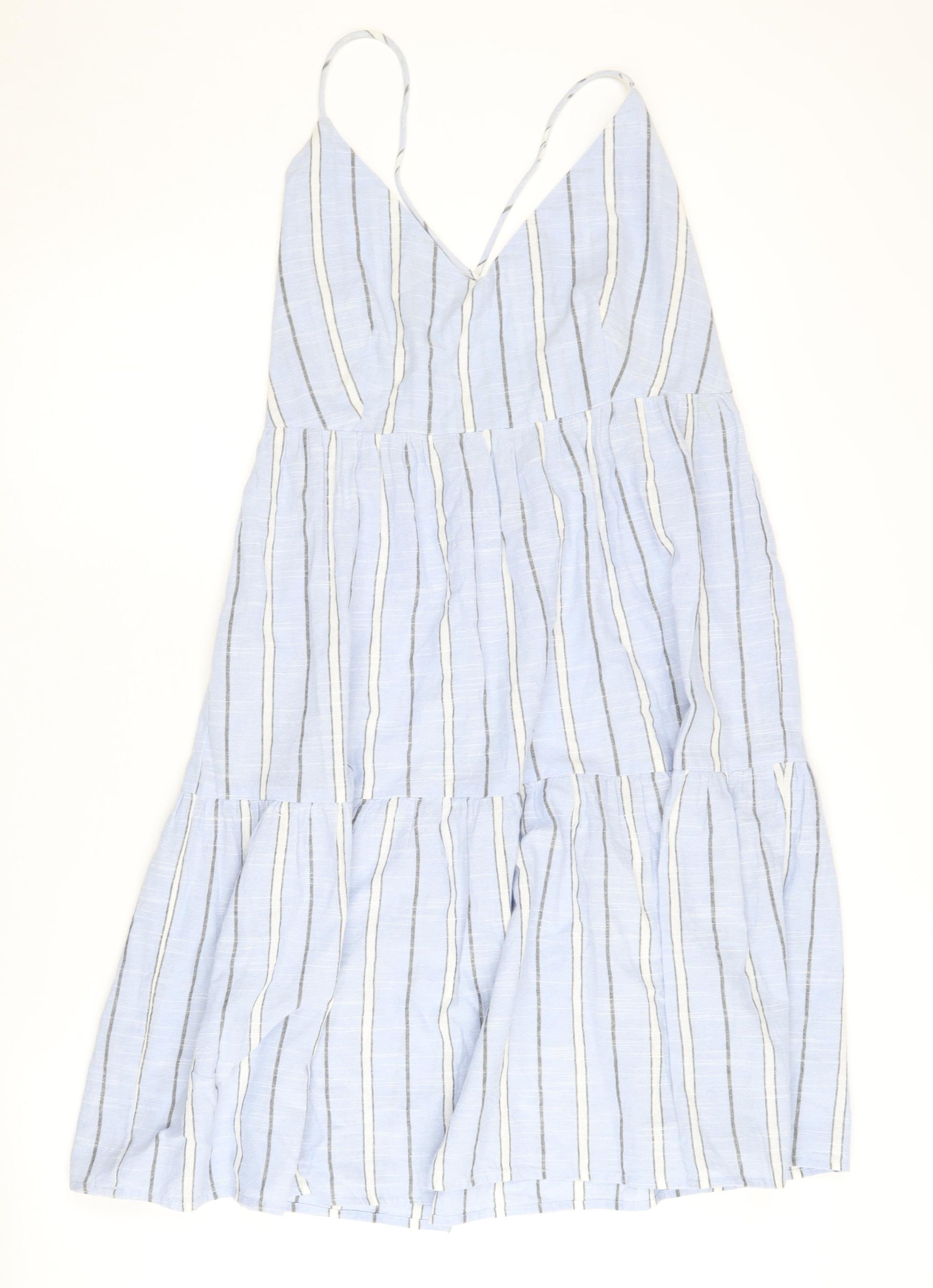 Embrace a touch of effortless style with this Mantaray women's dress, perfect for casual summer outings. Crafted from 100% cotton, this dress ensures comfort and breathability, making it an ideal choice for warm weather. The soothing blue hue, complemented by a classic striped pattern, offers a chic and fresh appeal. Its sleeveless design with a strappy sleeve type and adjustable features ensures a perfect fit with a relaxed vibe.The dress boasts a V-neck which perfectly frames the neckline, adding an elegant touch to the overall look. The tie closure at the back provides a flattering silhouette, allowing you to customize the fit according to your body shape. With a woven fabric type, this dress showcases a lightweight yet structured form that enhances its casual elegance. This versatile piece is easy to maintain, as it is machine washable, saving you time and effort in garment care.Ideal for a beach theme or a leisurely stroll in the park, this dress captures the essence of laid-back sophistication. Despite being in excellent condition with no visible damage, it delivers both quality and style. Whether paired with sandals for a day out or dressed up with accessories for a casual dinner, this Mantaray dress is a must-have for any season's wardrobe. Add a touch of chilled sophistication to your collection with this delightful fashion staple. Perfect for those who appreciate understated elegance and easy-to-wear fashion.