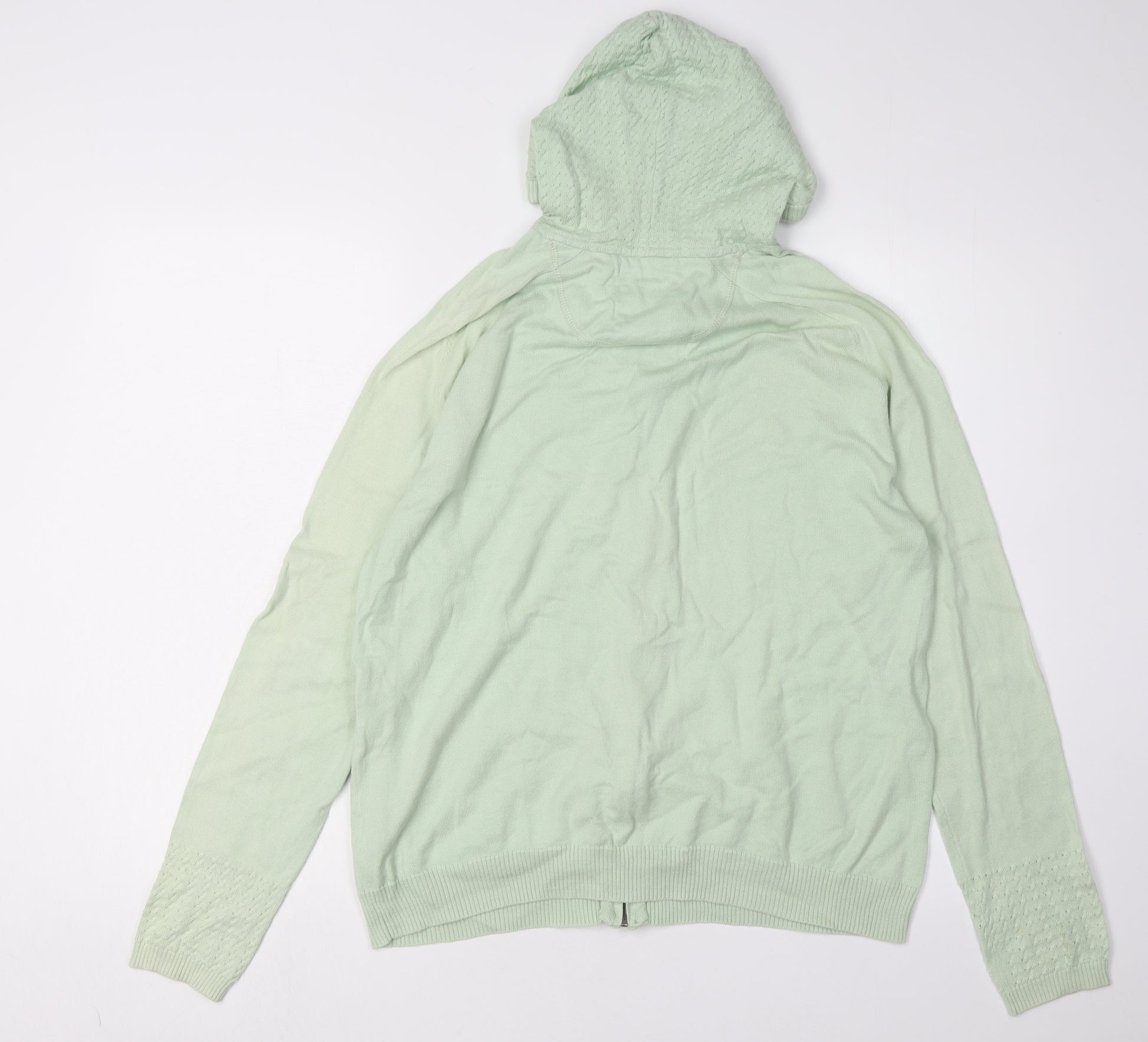Add a fresh touch to your wardrobe with this Mantaray Women's Green Full Zip Hoodie Jacket. Perfectly designed for those who love comfort and style, this hoodie is ideal for casual outings. Crafted from 100% cotton, it offers a soft, breathable material that is machine washable for easy care. The long sleeves and full zip design combined with a convenient hood and practical pockets make it a versatile wardrobe staple. Its refreshing green color and no pattern design make it easy to pair with any outfit, suitable for both spring and autumn seasons. The raglan sleeves add a unique touch, offering both style and comfort. Accentuated with a zip for easy wear, this hoodie fits the casual occasion effortlessly, ensuring you look chic yet comfortable. Despite being slightly worn, it remains in excellent condition with no visible defects, giving you the best value for your money. This jacket promises to be a favorite addition, capturing your love for quality and style in everyday wear.