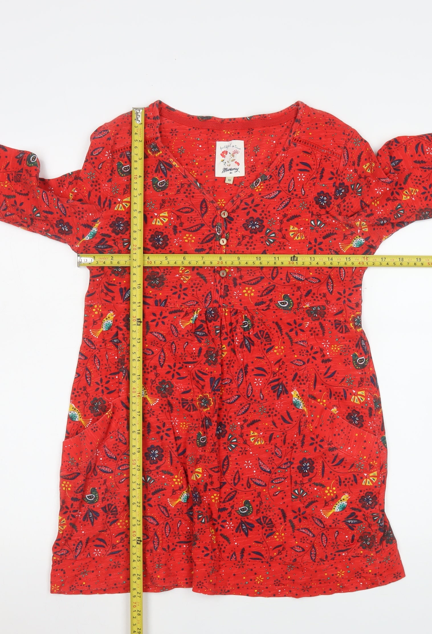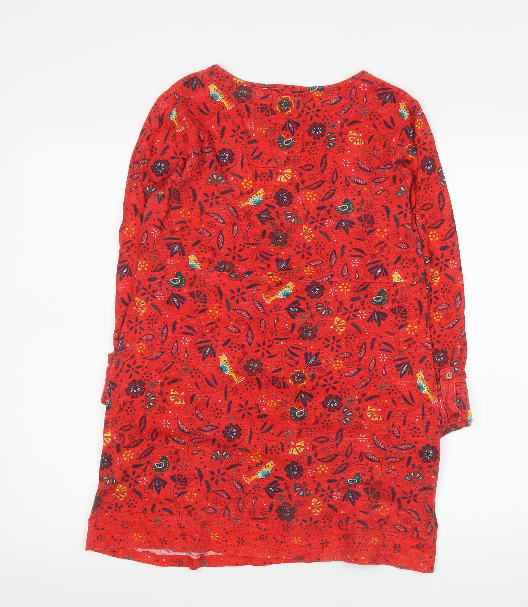 Womens Red Floral Tunic Blouse Size 10 Cotton Long Sleeve