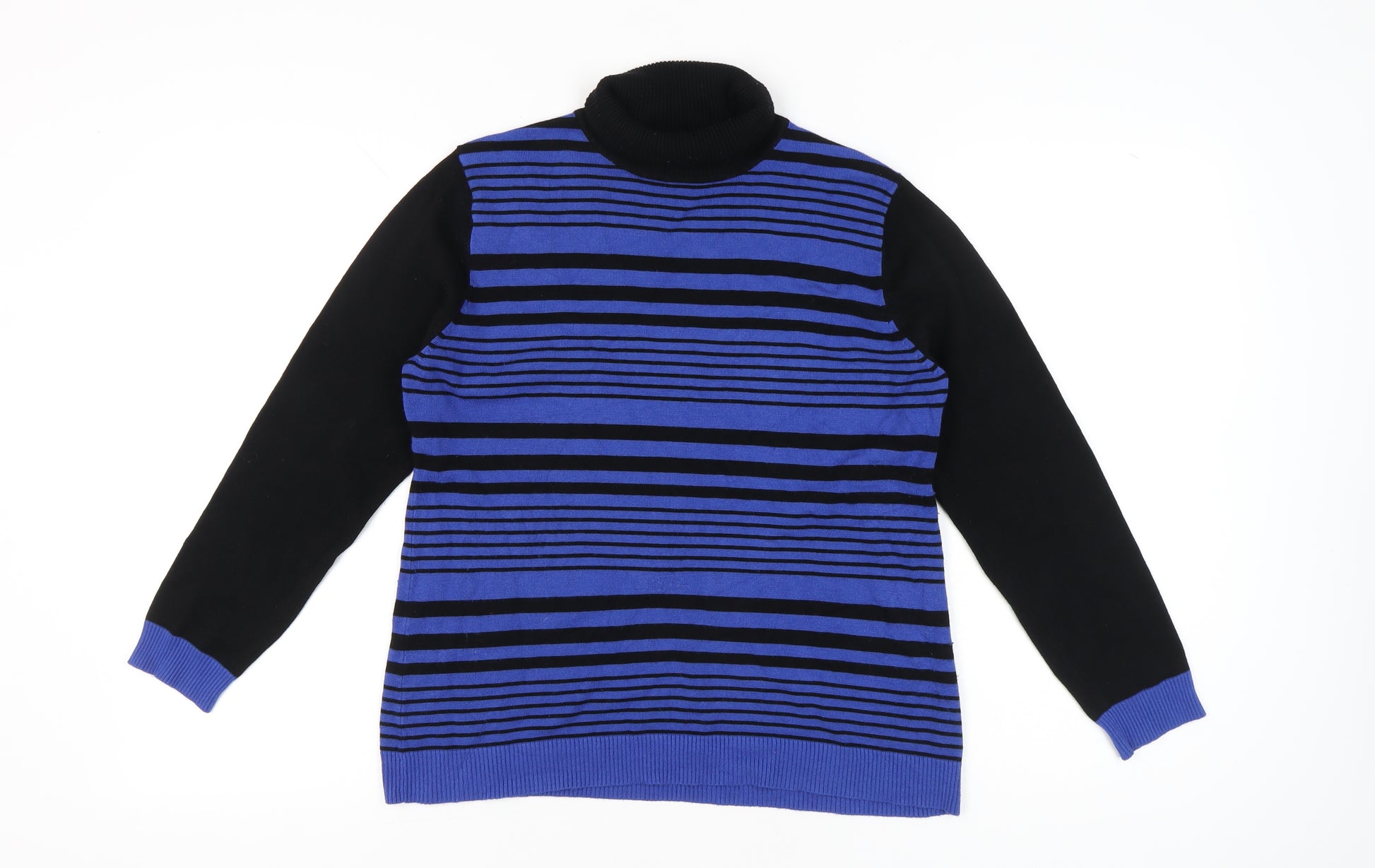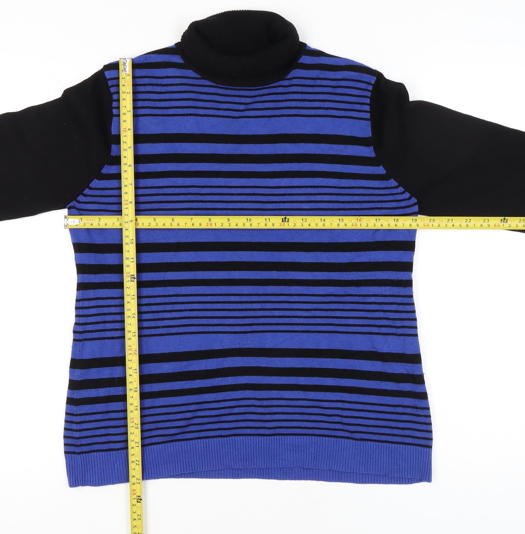Womens Blue Black Striped Roll Neck Jumper Size 12