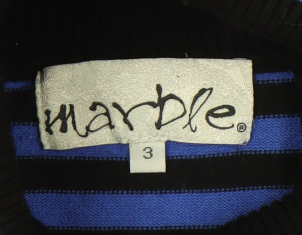 Update your wardrobe with this chic Marble women's striped jumper. Featuring a timeless roll neck design, this jumper is perfect for the colder seasons, providing both warmth and a stylish look. Made from a soft and breathable blend of 55% cotton and 45% polyamide, this piece offers comfort while maintaining its shape wear after wear. The classic combination of bold blue and black stripes creates a versatile and eye-catching look that can be dressed up or down. Its long sleeves and regular fit make it suitable for everyday casual wear, while the lightweight knit ensures ease of layering under jackets or coats. This jumper's tight-knit construction makes it durable and practical, while still delivering a modern, comfortable style. Perfect for autumn and winter, it can be styled with jeans, skirts, or trousers for a chic, effortless outfit. A versatile addition to your wardrobe from Marble, a brand known for high-quality pieces with a stylish edge. Though pre-owned, this jumper is in very good condition with only light signs of wear, offering excellent value for those seeking quality fashion at an affordable price. Whether you're heading out for casual daywear, layering up for chilly evenings, or refreshing your winter wardrobe with a bold yet classic style, this jumper is a great choice.