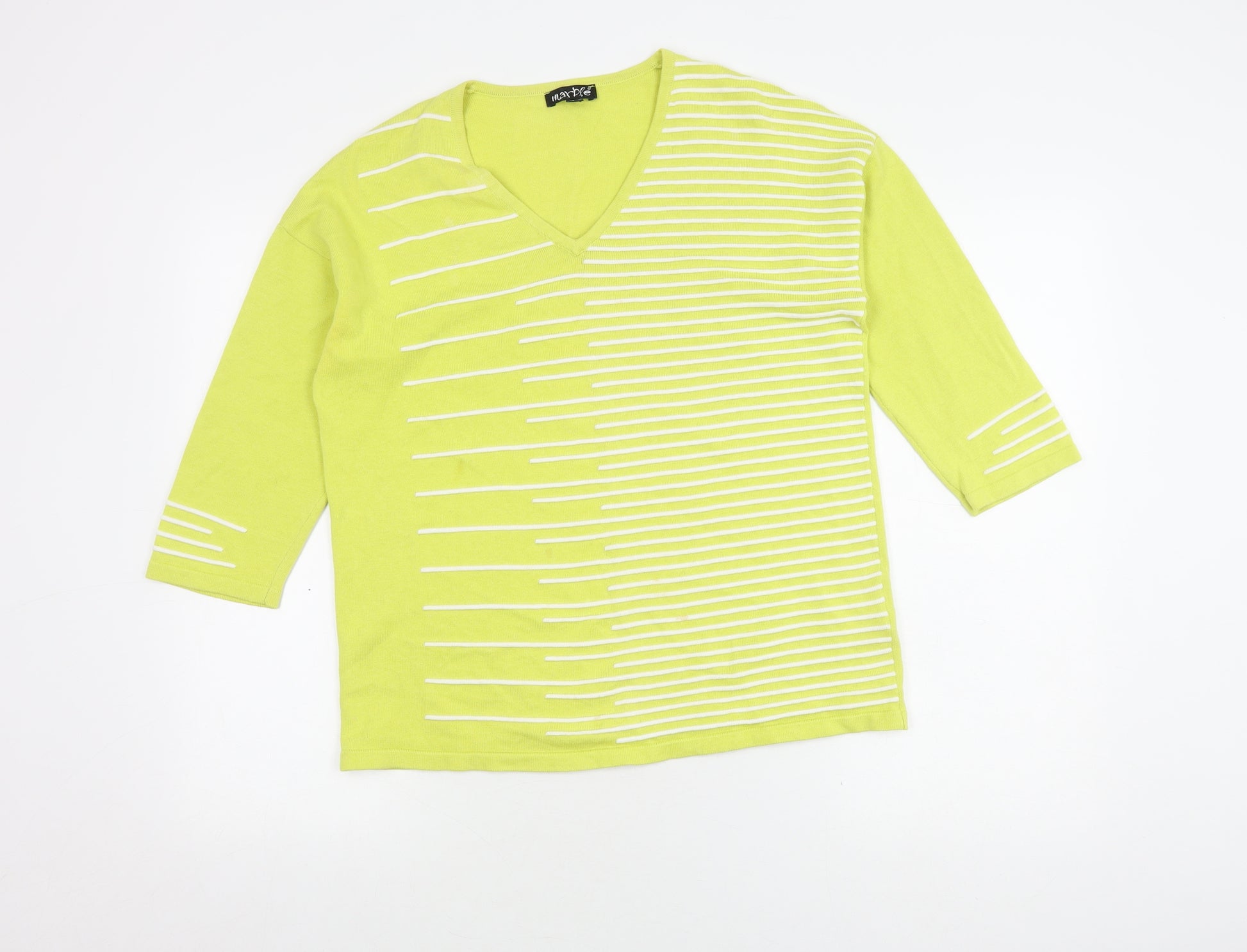 Elevate your casual wardrobe with this vibrant Marble Women's Pullover Jumper. Crafted from breathable 100% cotton, this piece promises comfort and ease for spring and summer wear. The refreshing green hue, complemented by a subtle white stripe pattern, adds a pop of colour to any ensemble. Designed with a flattering V-neckline and on-trend 3/4 sleeves, this jumper combines style with practicality. Whether you're heading out for a casual day trip or enjoying a relaxed brunch, this regular-fit piece ensures you look chic and feel comfortable. Perfect for layering or wearing on its own, it's a versatile addition to any woman’s collection. Don't miss the chance to own this gently worn, excellently maintained jumper for a fraction of the retail price.