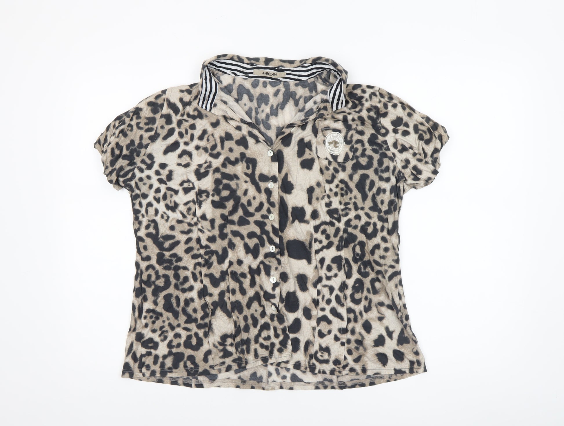 Women's Beige Leopard Print Cotton Button-Up Shirt Size 14