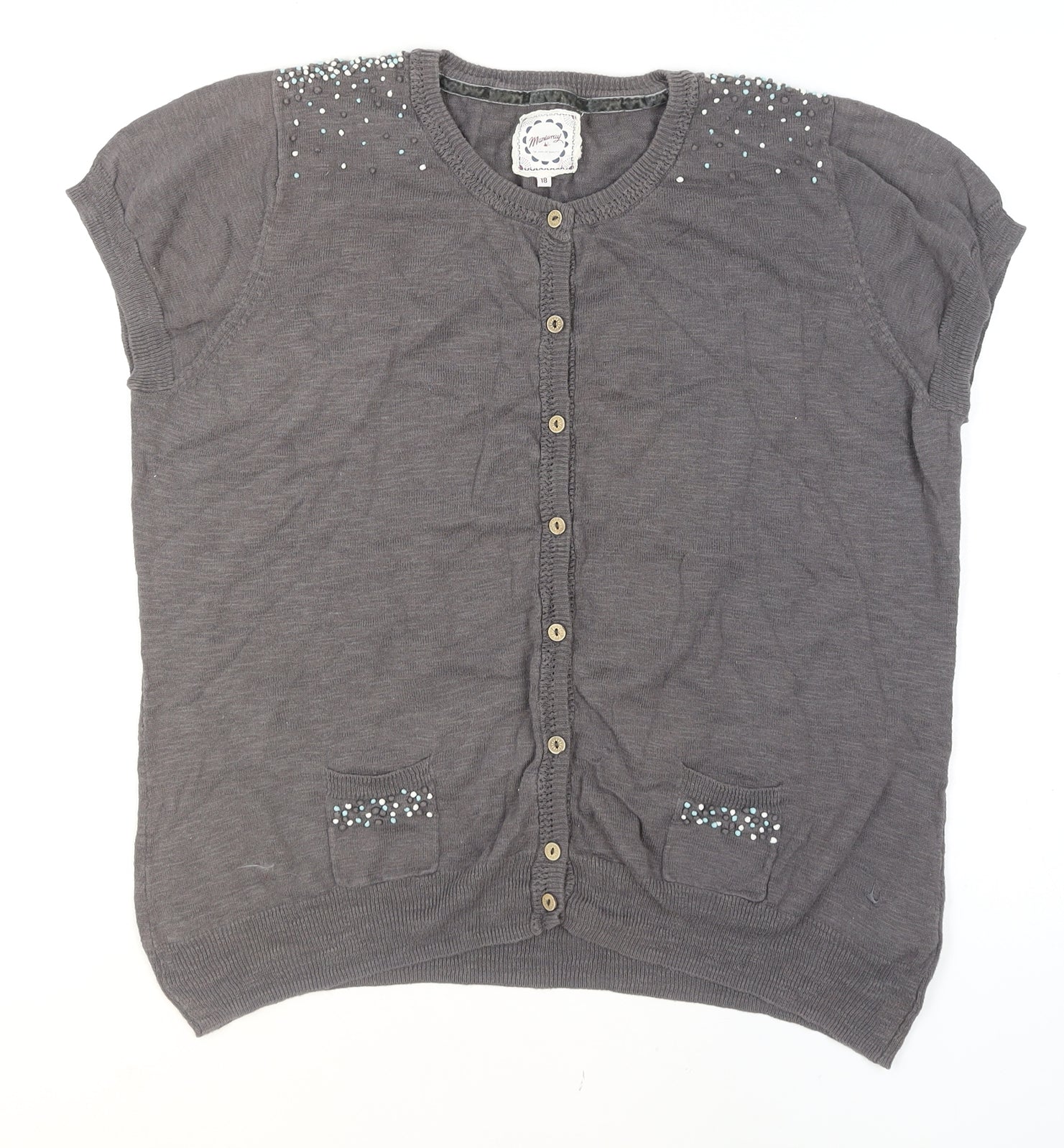 Women’s Grey Cotton Beaded Button Blouse Size 18