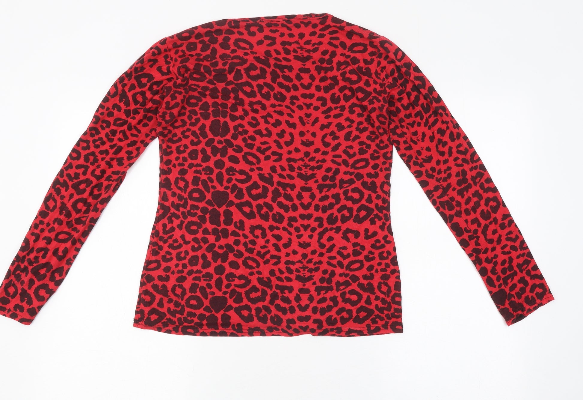 Womens Red Animal Print Polyester Basic T-Shirt Size M Round Neck - Leopard Print
