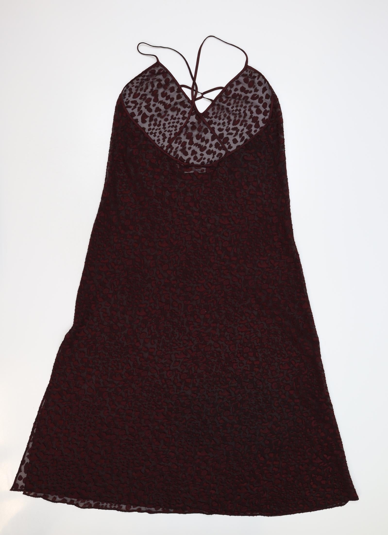 Womens Red Animal Print A-Line Size L - Sheer