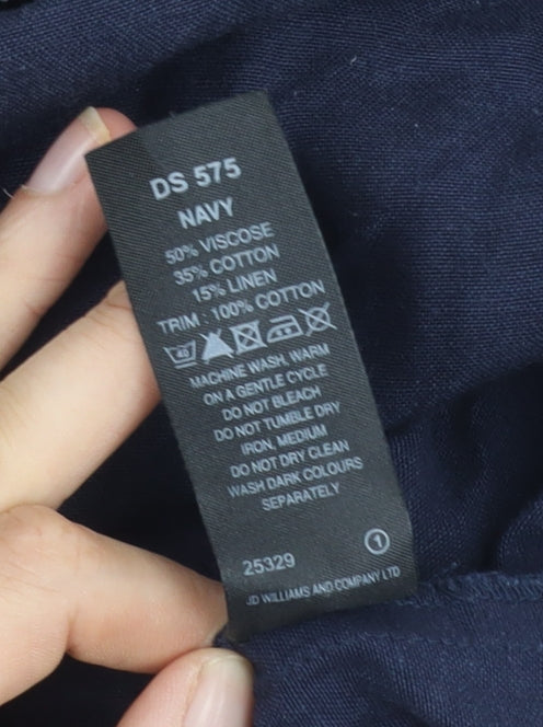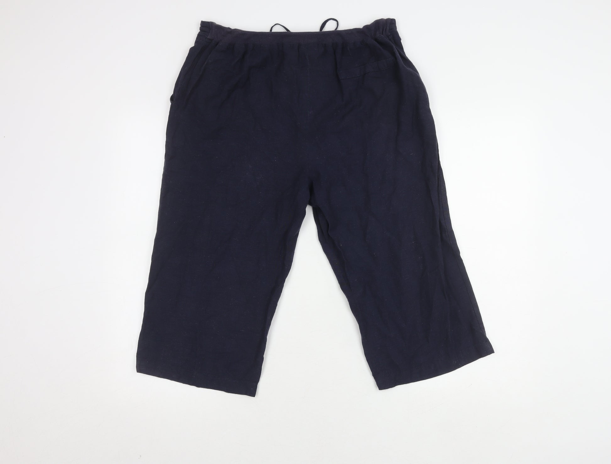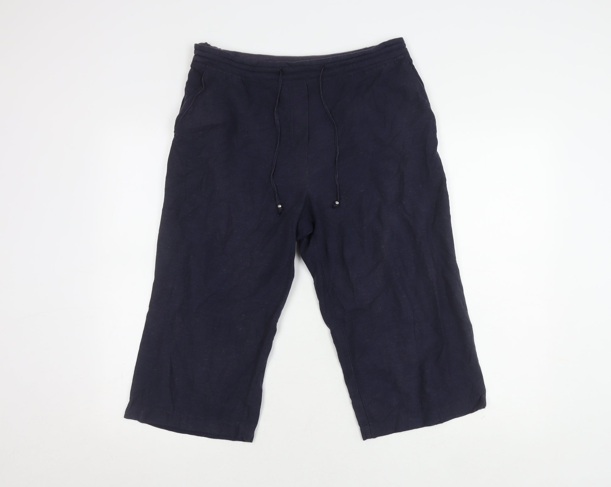 Explore the perfect blend of style and comfort with these Marisota cropped trousers for women. Crafted in a deep navy blue, they offer a chic summertime look suitable for casual occasions. Made of a unique blend of Viscose, Cotton, and Linen, the trousers promise breathability and softness. They feature a convenient drawstring closure with an elastic waist, ensuring a perfect fit for regular sizing. Flat-fronted for a sleek appearance, these trousers are versatile enough to match numerous tops and accessories. Designed for spring and summer, they are an ideal addition to any wardrobe, promising easy machine care to maintain their look. Despite being gently used, they retain an excellent condition with no visible damage. Ideal for pairing with light summer blouses or casual tops, these trousers are perfect for garden parties or relaxing days out. Buy them now and enjoy a classic wardrobe staple that caters to both comfort and style.