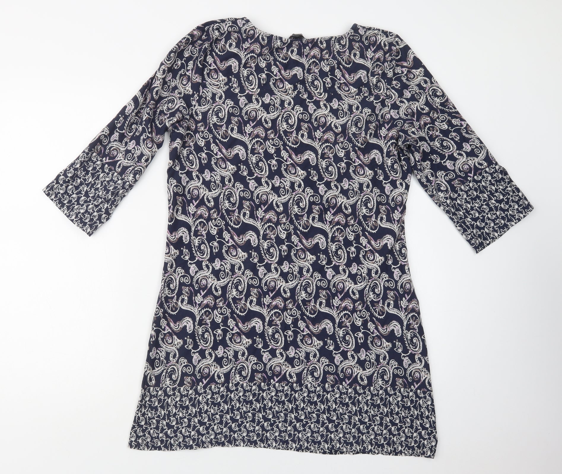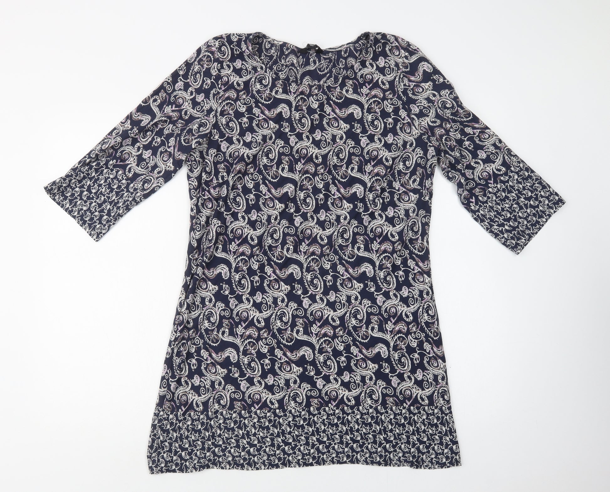 Womens Blue Paisley Cotton A-Line Size M Crew Neck