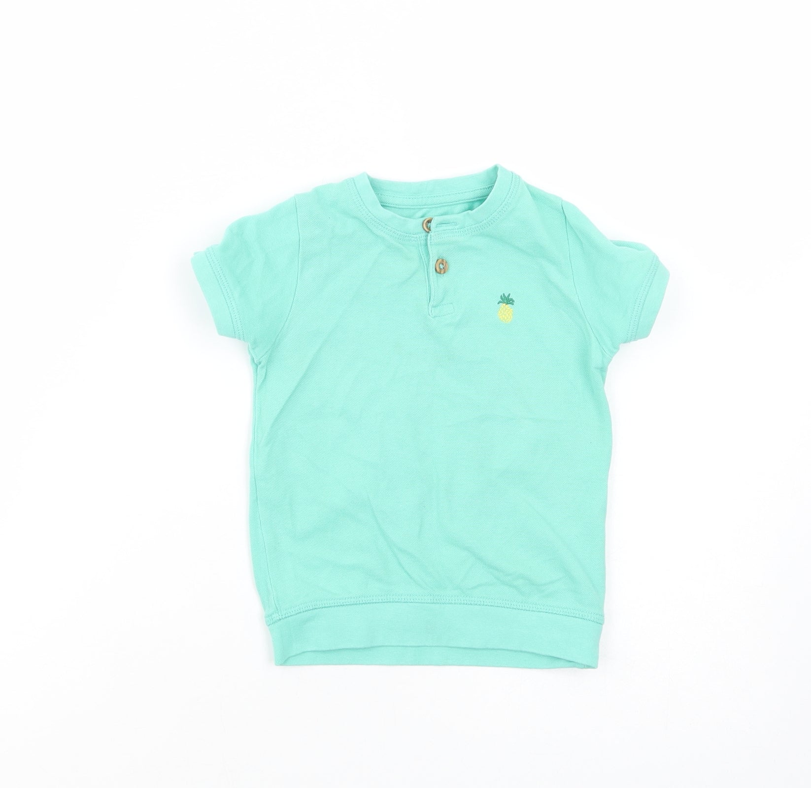 Baby Green Cotton Pullover T-Shirt Size 12-18 Months Roll Neck Button
