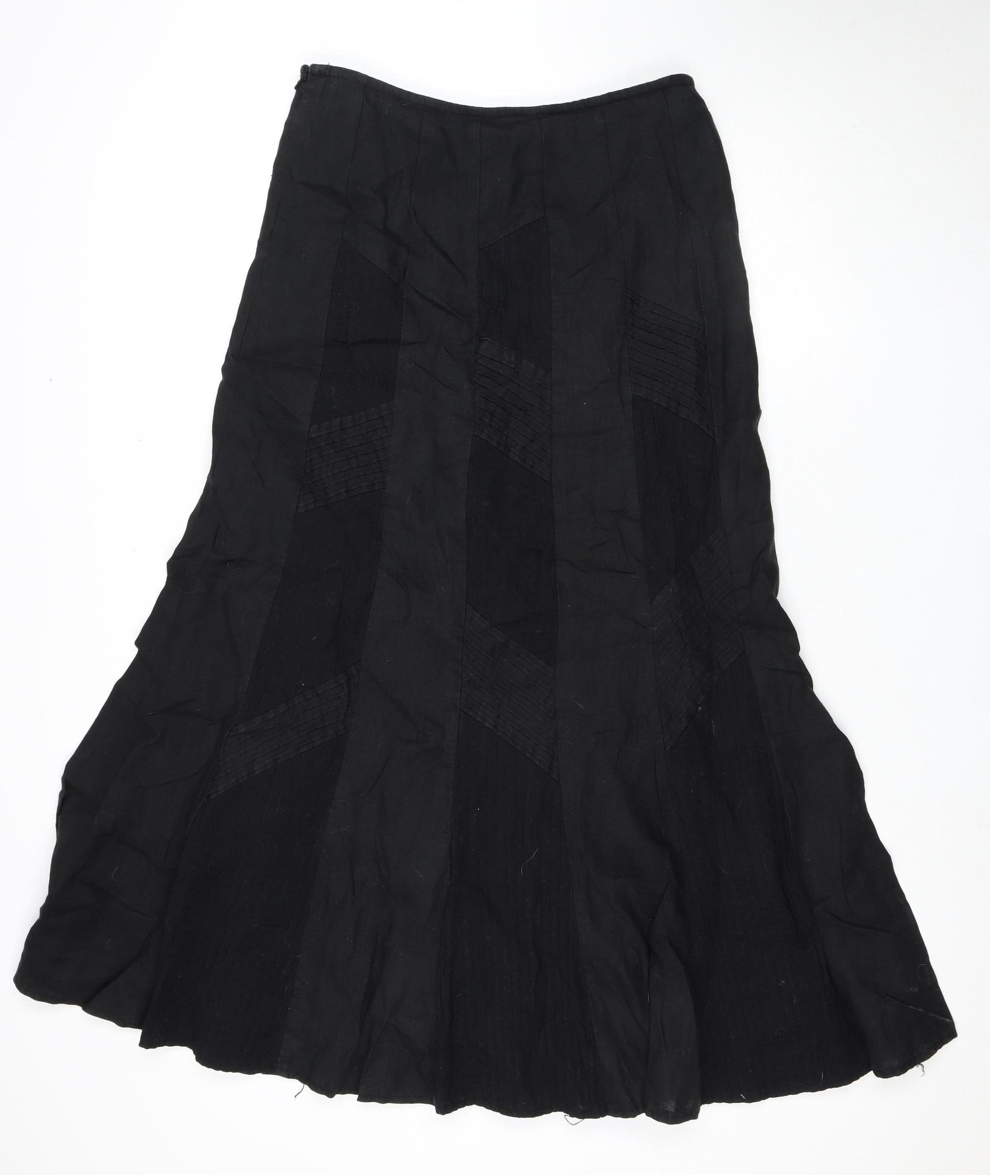 Explore timeless elegance with this A-Line skirt from Marks and Spencer, perfectly crafted for women who appreciate style and comfort. Made from a quality blend of 68% linen and 32% cotton, this long black skirt is ideal for a variety of occasions—with a casual charm that effortlessly transitions through all seasons. Designed for comfort and durability, it offers practical machine washability. In an excellent condition, showing just minimal signs of wear, this skirt is an essential addition to any wardrobe. The classic black hue and A-Line style make it a versatile piece for almost any casual setting.