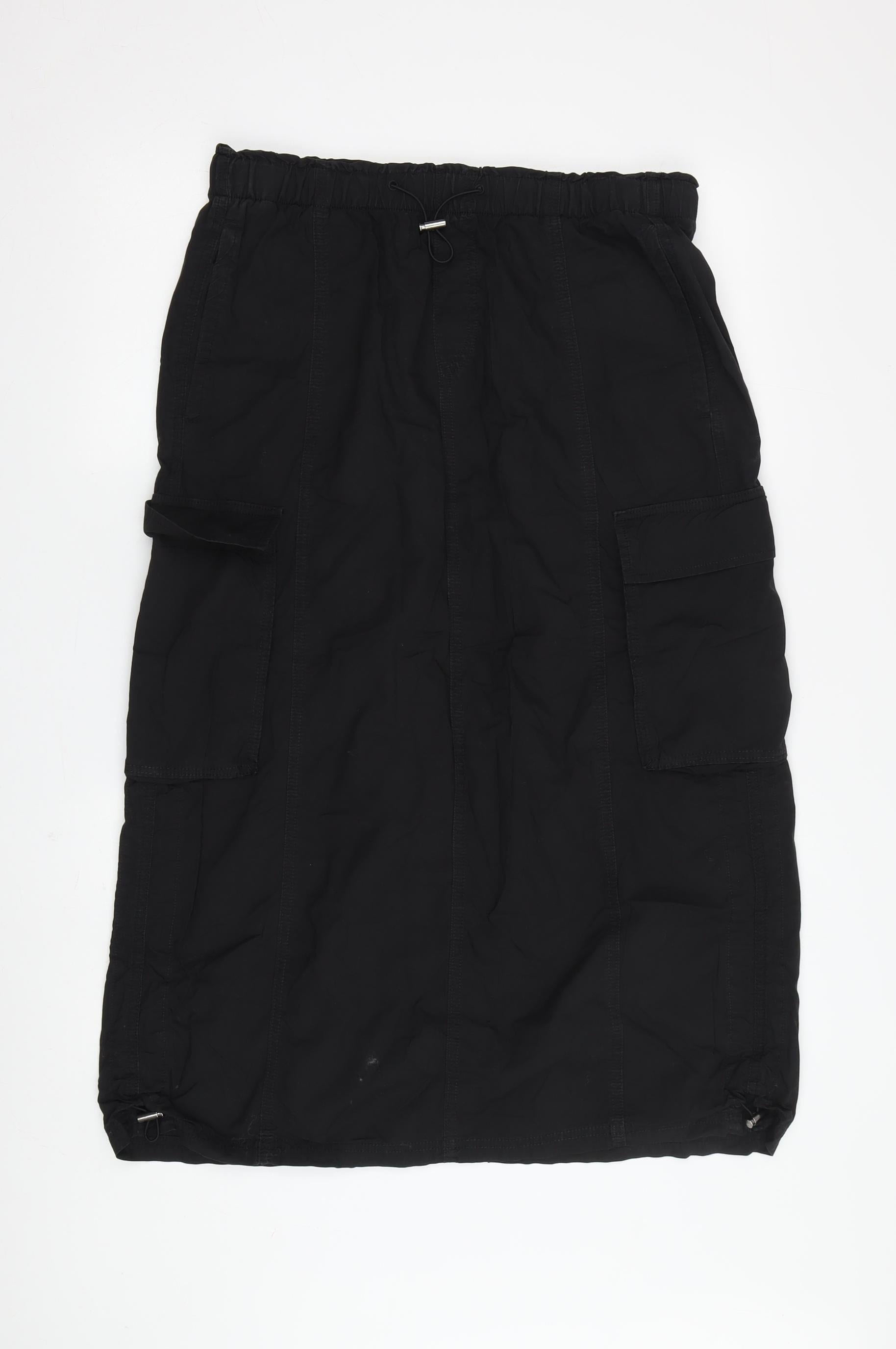 Elevate your casual wardrobe with this stylish black cargo skirt from Marks and Spencer. Designed for women, this short-length skirt embraces both functionality and fashion, making it an ideal choice for everyday wear. Crafted from 100% cotton, this skirt ensures breathability and comfort, promising a relaxed fit throughout the day. Its practical features include an elastic waist and handy pockets, making it not only comfortable but also convenient for carrying small essentials. The black colour offers versatility, allowing you to pair it effortlessly with any top or footwear for a laid-back, chic look. Despite its lack of original sales tags, the skirt remains in excellent condition, with only minimal creasing. This cargo skirt is perfect for all seasons, adding a touch of casual elegance to your outfit. Whether you're out running errands or enjoying a casual meet-up, this skirt is a must-have addition to your collection. Don't miss out on this opportunity to own a functional yet trendy piece from a renowned brand.