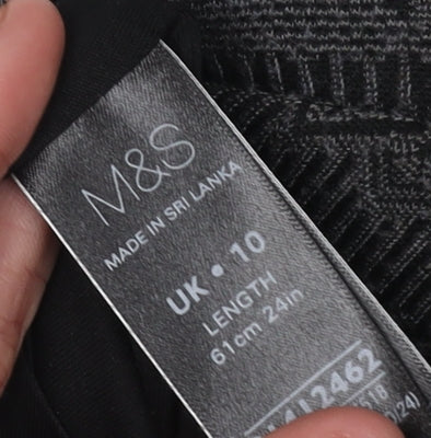 Elevate your everyday wardrobe with this exquisite Marks and Spencer black geometric midi pencil skirt. Designed for women, this timeless piece is perfect for casual occasions and features a mix of elegant geometric patterns that are sure to turn heads. Its classic straight and pencil style hugs your curves, offering a flattering silhouette that complements various body types. Crafted from high-quality knit fabric, this skirt is composed of 88% polyester, 10% viscose, and 2% elastane, ensuring a soft stretch and a comfortable fit. The elastic waist provides additional ease of wear, making it a practical yet stylish addition to your wardrobe. This versatile piece is suitable for all seasons, allowing you to pair it with your favourite tops and shoes to create chic and sophisticated looks. Ideal for those seeking a modern and fashionable garment, this skirt is machine washable, making it easy to care for and maintain. Whether you're heading to a casual outing or an office environment, this Marks and Spencer skirt will seamlessly enhance your style with its elegant design and perfect fit.