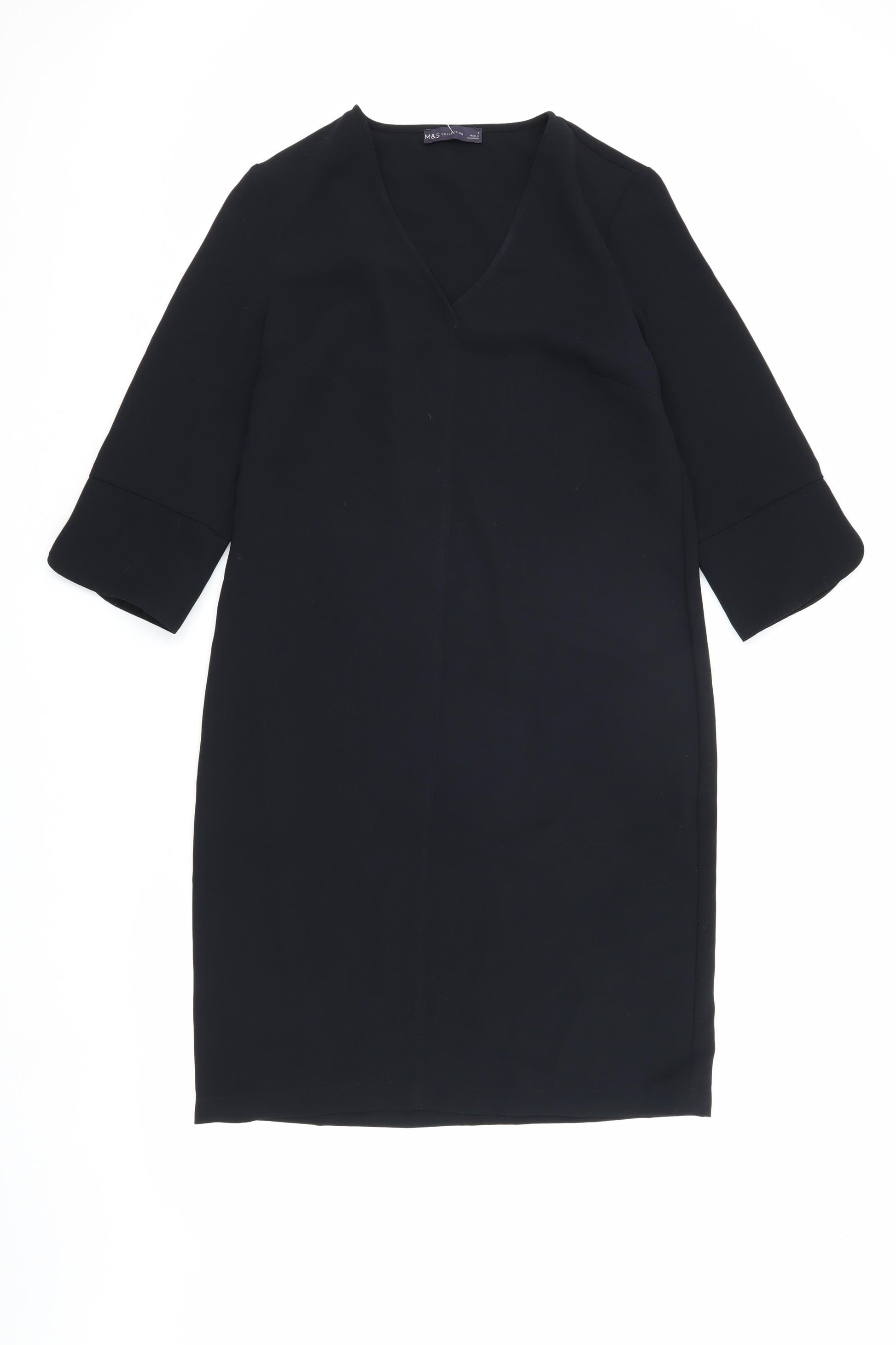 Step into effortless elegance with this Marks and Spencer black dress, tailored to perfection for the modern woman. Crafted in a sleek V-neck style, this dress brings a touch of sophistication to any wardrobe. The 3/4 sleeve design offers a modest yet chic look, perfect for various occasions. Whether you're attending a business meeting or a casual dinner, the versatile style of this dress adapts seamlessly. Its regular size type ensures a comfortable fit for size 8, while the classic black hue provides a timeless aesthetic. Made under the renowned Marks and Spencer brand, quality and style are guaranteed. Despite being pre-owned, the dress remains in excellent condition with no visible wear. Perfect for those seeking a reliable yet stylish addition to their collection, this dress is your go-to option for any season. Pair it with heels for a formal event or boots for a casual outing, the possibilities are endless. Add this versatile piece to your wardrobe today and experience the blend of comfort and class.