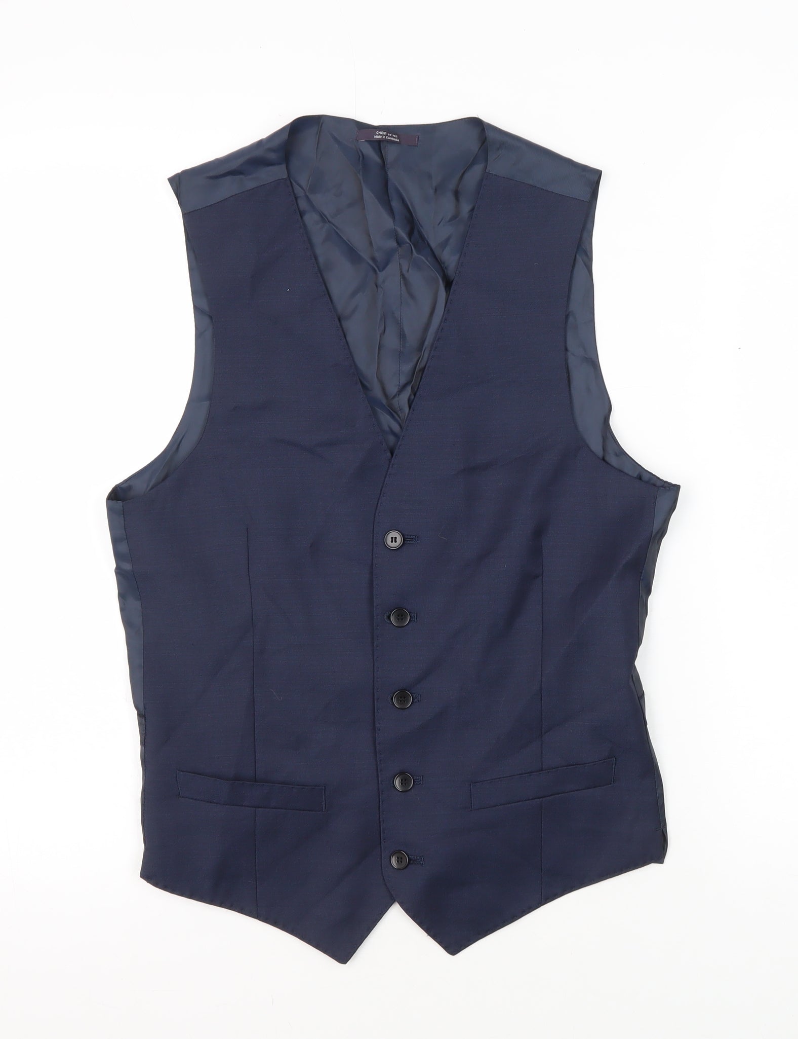 Step into sophistication with this Marks and Spencer men's suit waistcoat, crafted exquisitely from pure wool. In a classic blue colour, this waistcoat is tailored in a size XS, fitting a chest size of 34. Perfect for a refined, polished look, this waistcoat features a regular fit that offers both comfort and style. With a clean, no-pattern design, it's versatile enough to pair with various suits or as an accessory for more casual outfits. The waistcoat is impeccably lined with polyester and viscose, bringing a touch of luxury and ensuring a comfortable wear. Its high-quality wool material guarantees both warmth and durability, making it ideal for multiple occasions. Whether you're attending a wedding, a formal business meeting, or a sophisticated evening event, this waistcoat delivers a sharp, elegant look that's bound to impress. Ensure your wardrobe stays stylish and timeless with this must-have piece. Don't miss the chance to elevate your attire with this new with tags Marks and Spencer waistcoat. Dry clean only, it promises easy maintenance of its remarkable look.